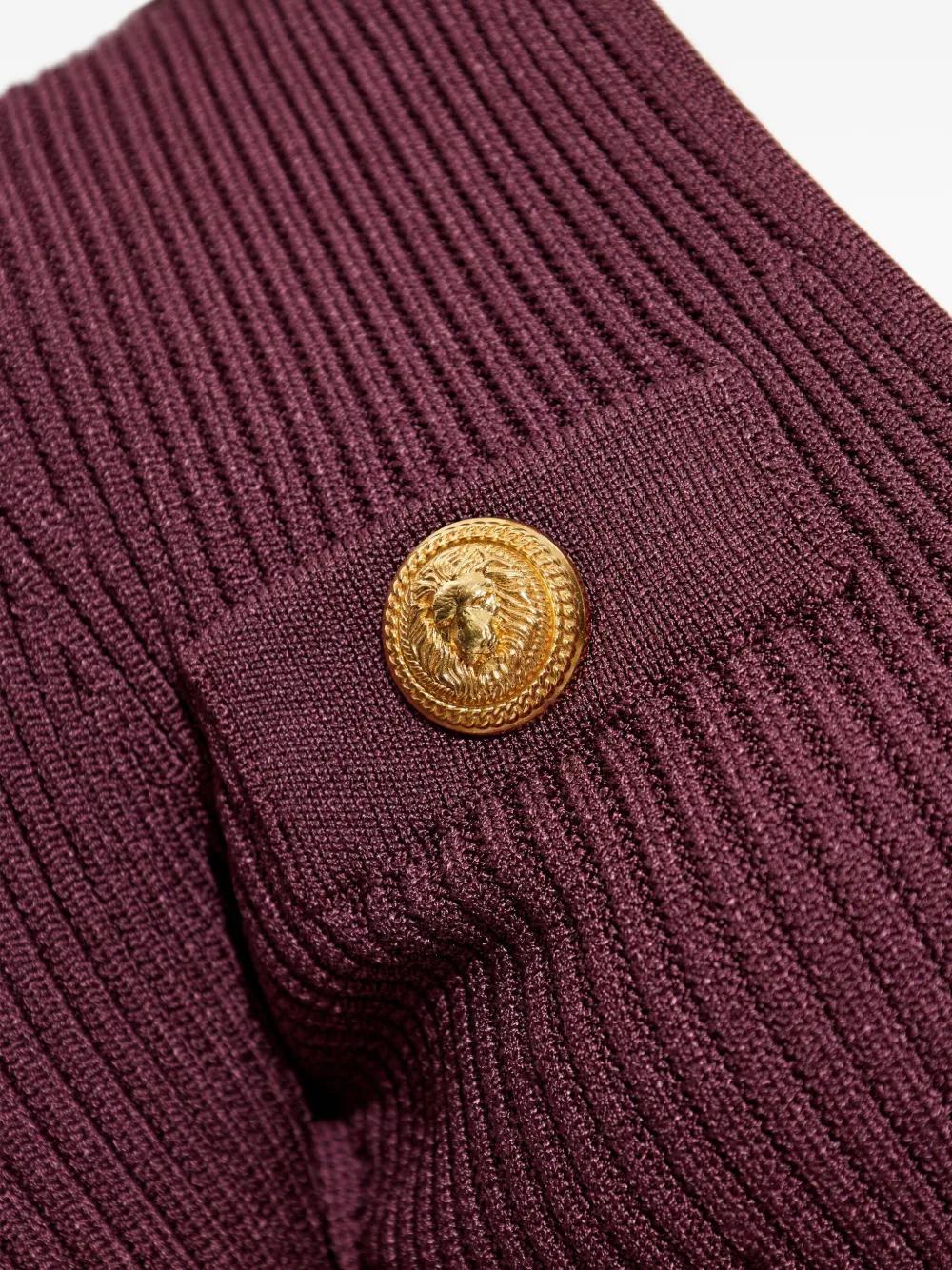 purple ribbed knit V-neck short sleeves front zip fastening gold-tone hardware