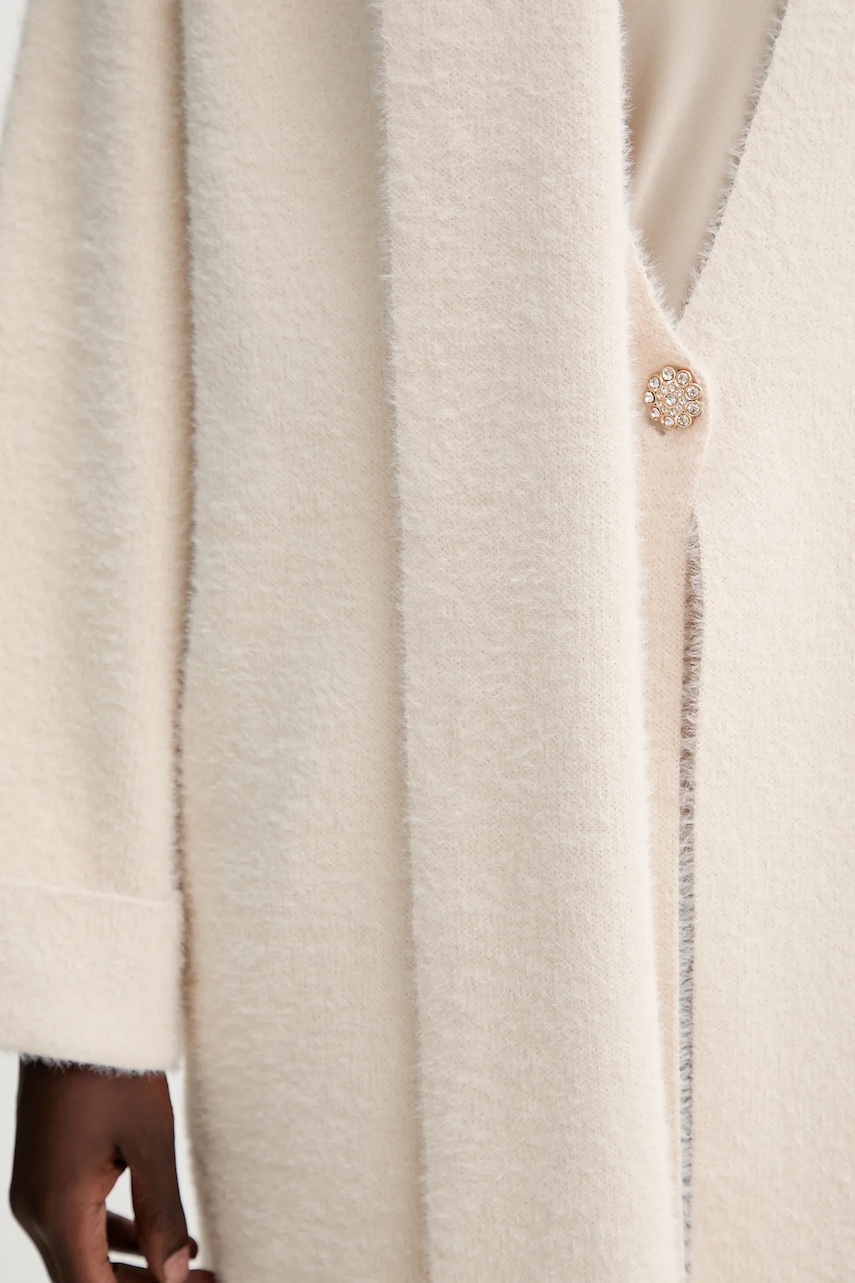 - Luźny krój zapewniający pełną swobodę ruchów. - Długi rękaw. - Krój rękawa z obniżoną linią ramion nie ogranicza mobilności. - Niezapinany model. - Model z wiązaniem. - Dwie wsuwane kieszenie boczne. - Długość rękawa(mierzona od dekoltu): 73 cm. - Długość: 114 cm. - Szerokość pod pachami: 61 cm. - Wymiary podane dla rozmiaru: S.
