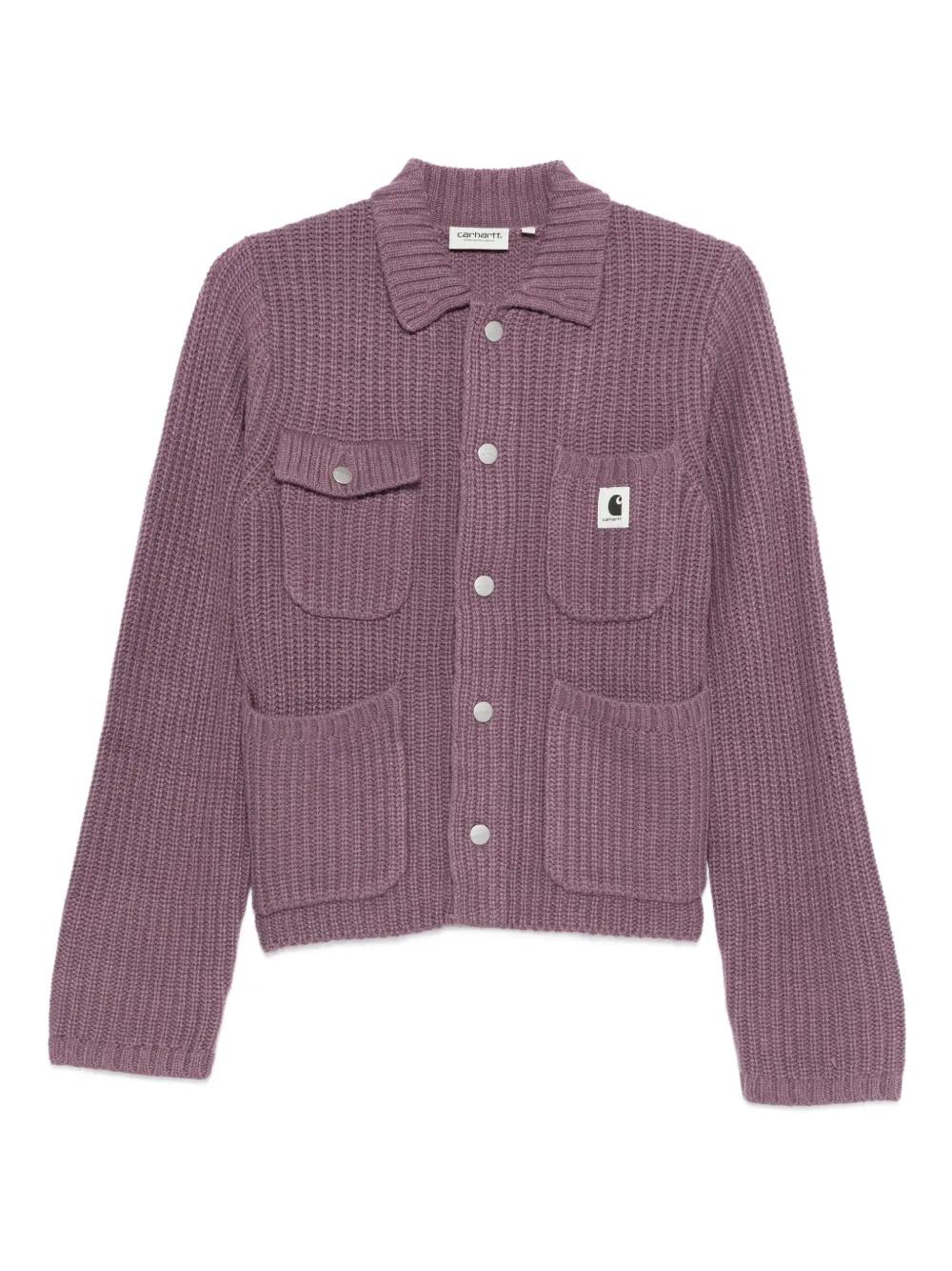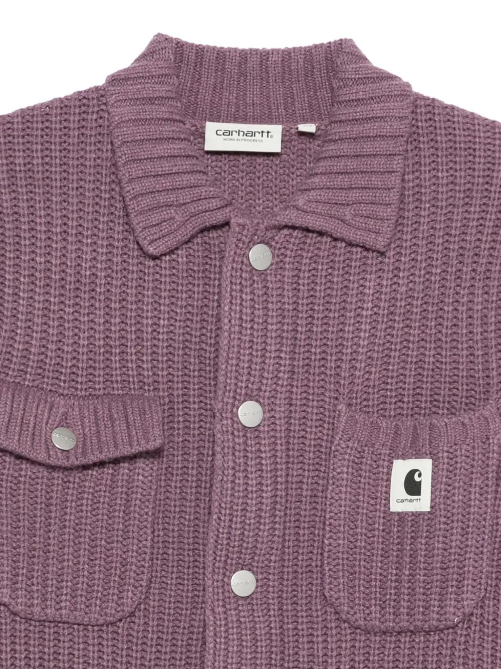 phlox ribbed knit point collar button fastening chest pockets front pockets logo patch