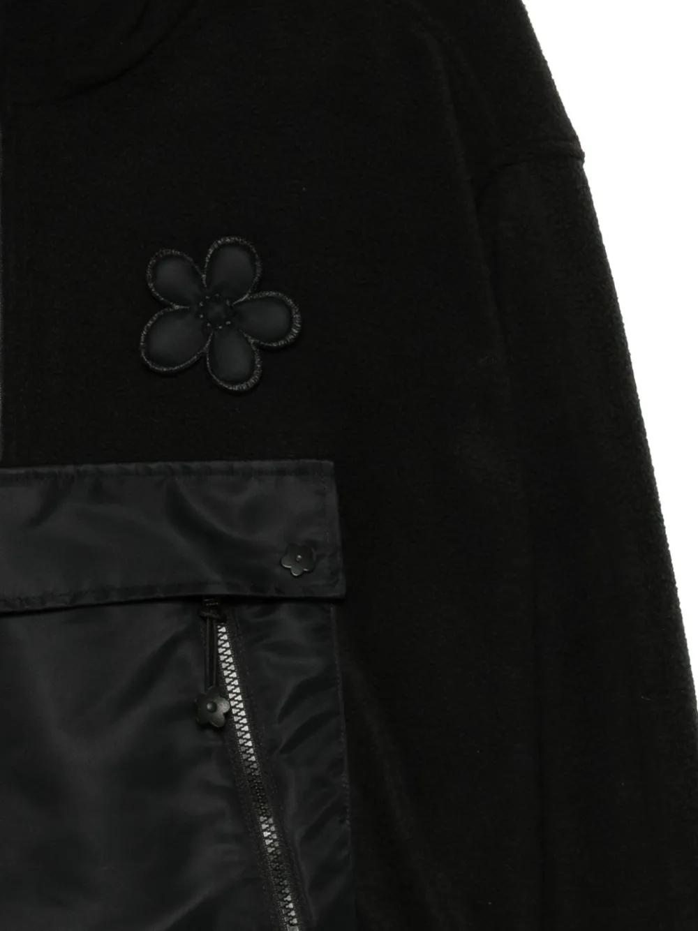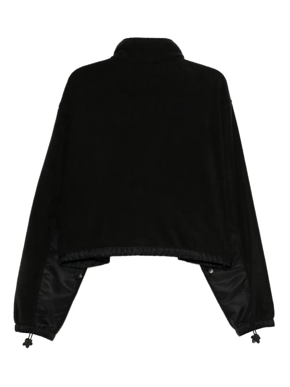 black half-zip fastening fleece texture front pouch pocket drawstring hem