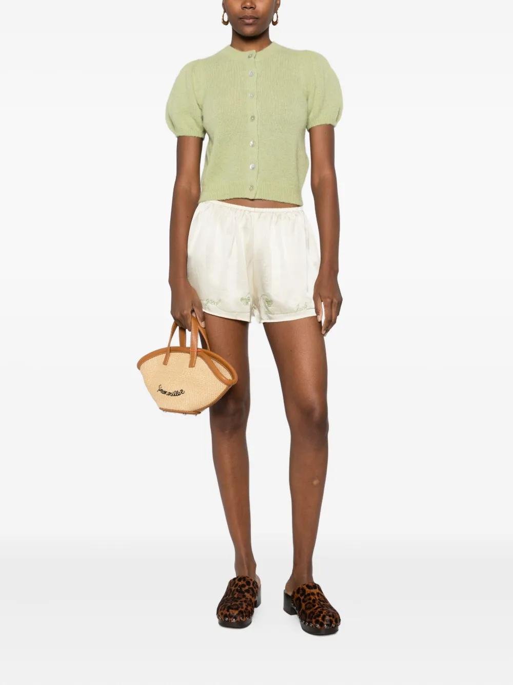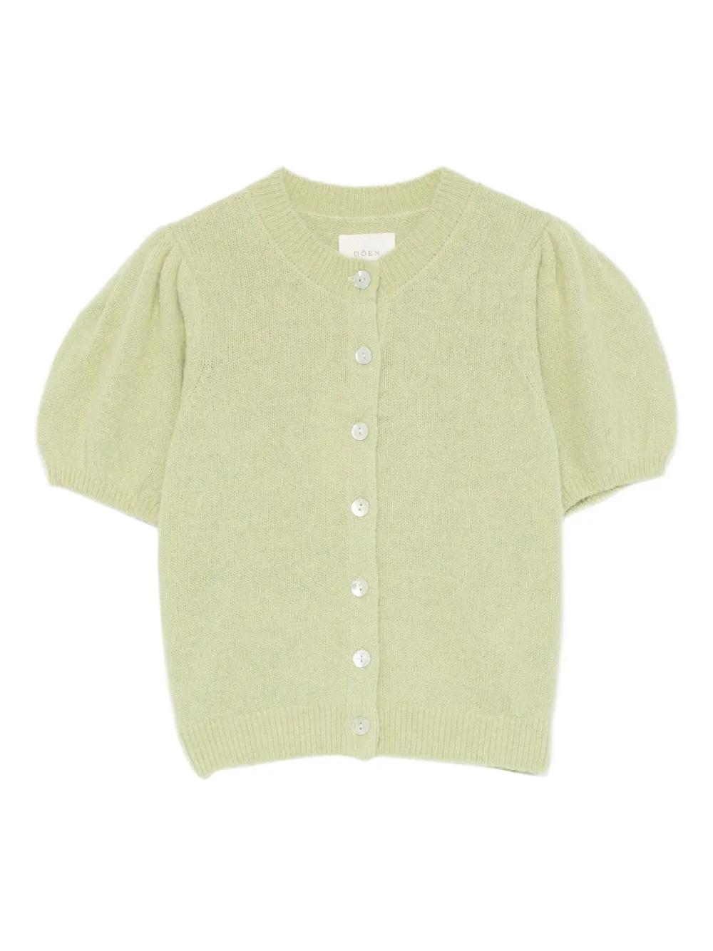 green alpaca wool blend front button fastening short sleeves round neck ribbed cuffs and hem