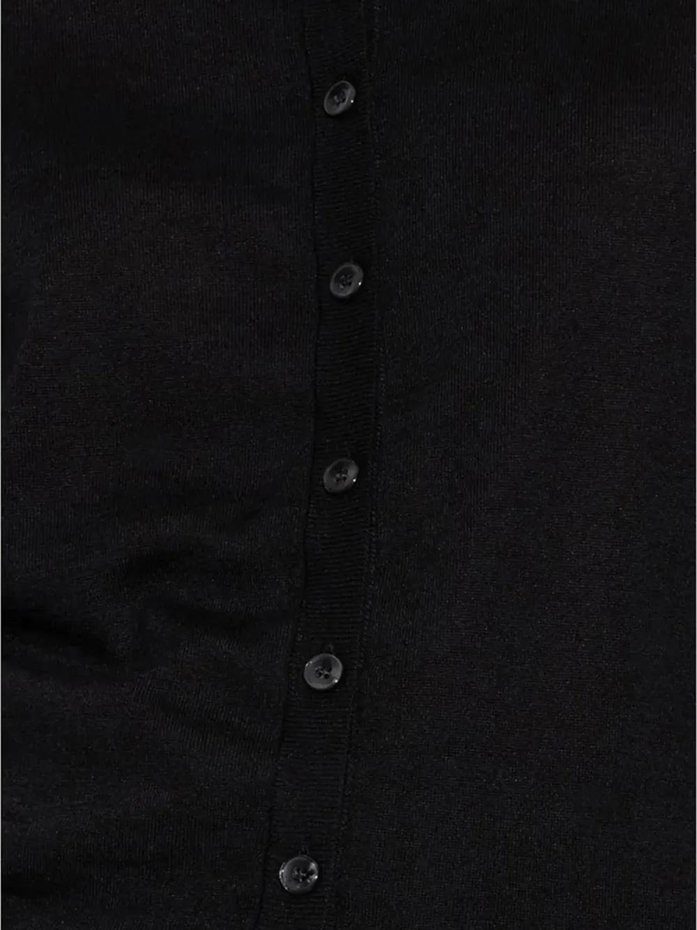 black cashmere-silk blend front button fastening long sleeves round neck straight hem internal logo patch