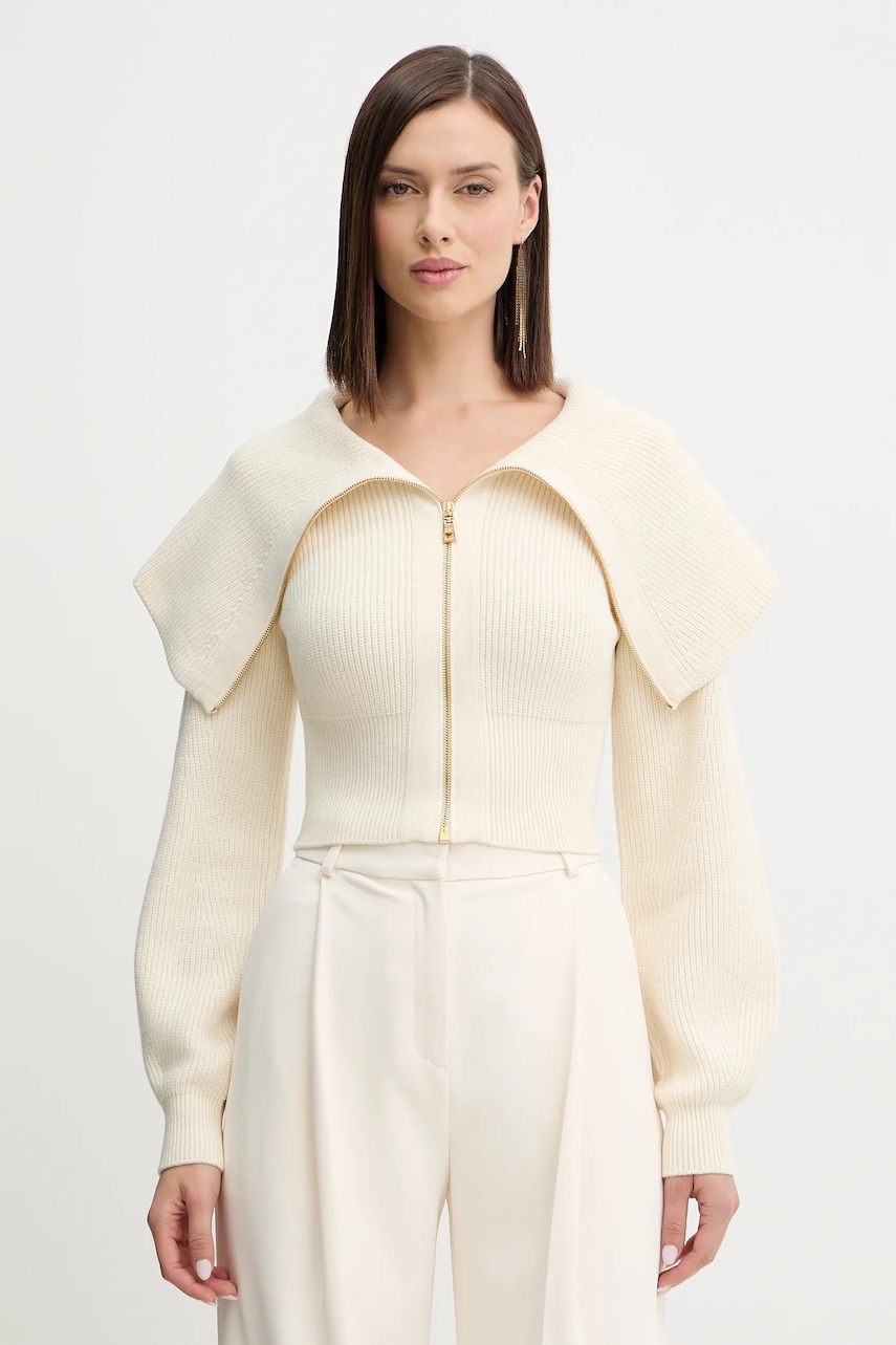 Elisabetta Franchi kardigan z dodatkiem wełny damski kolor beżowy lekki MK04S56E2