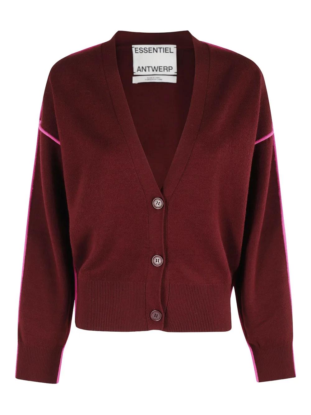 red contrast trims V-neck button fastening long sleeves ribbed hem