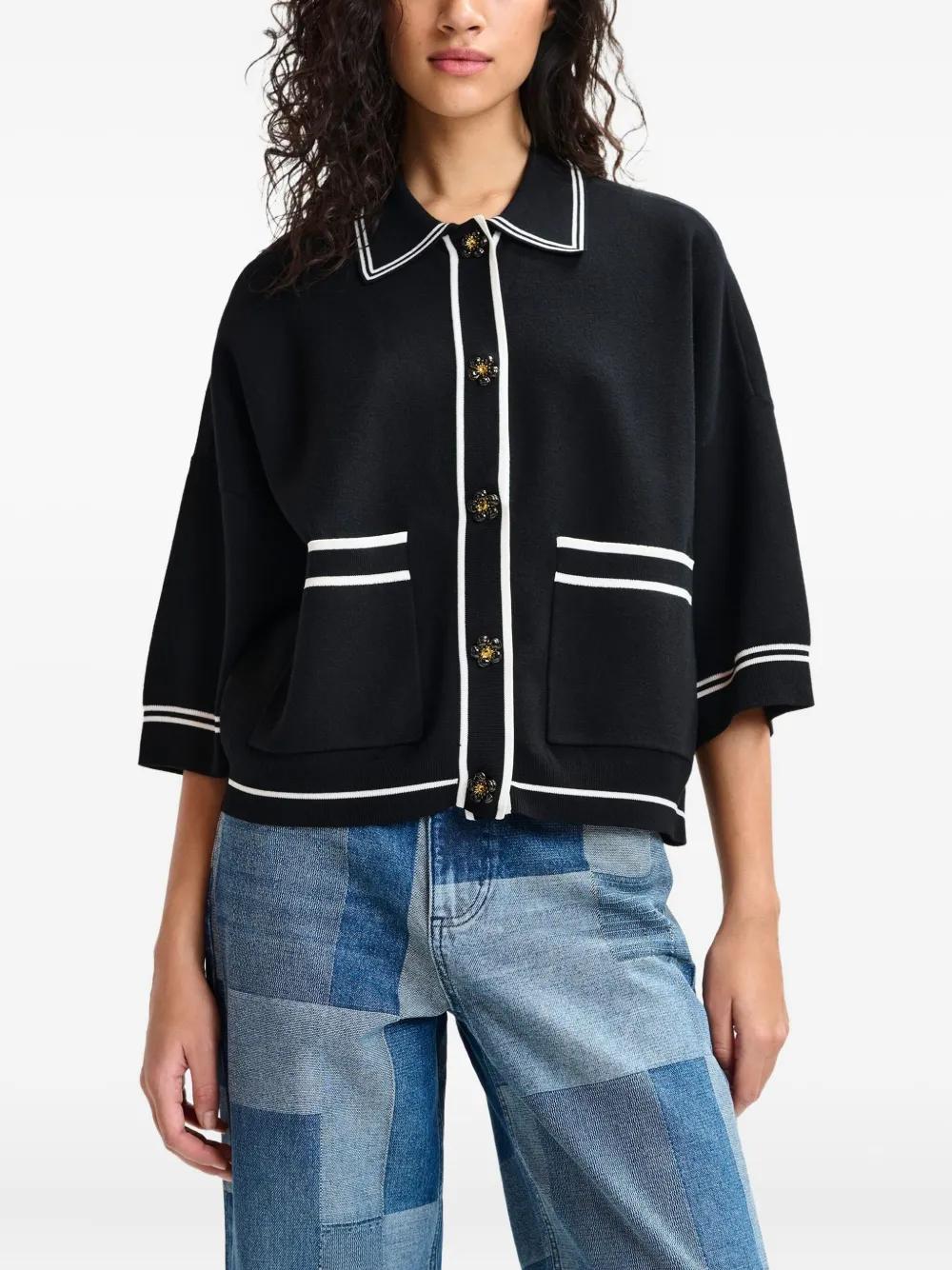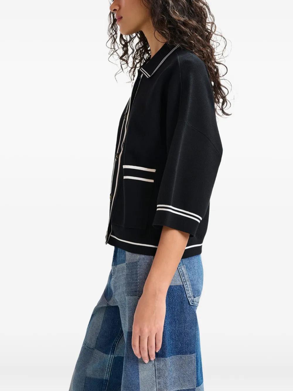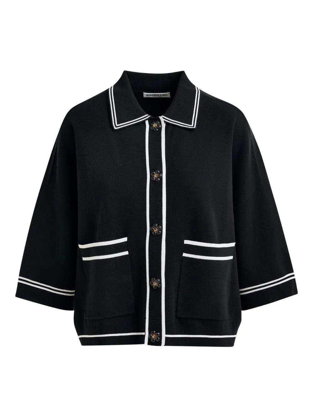 black press-stud fastening classic collar contrasting trim three-quarter length sleeves