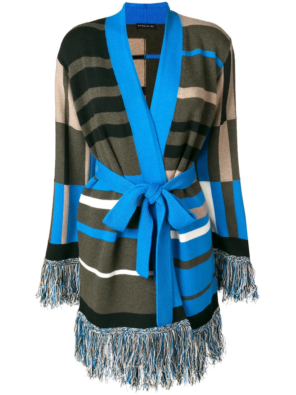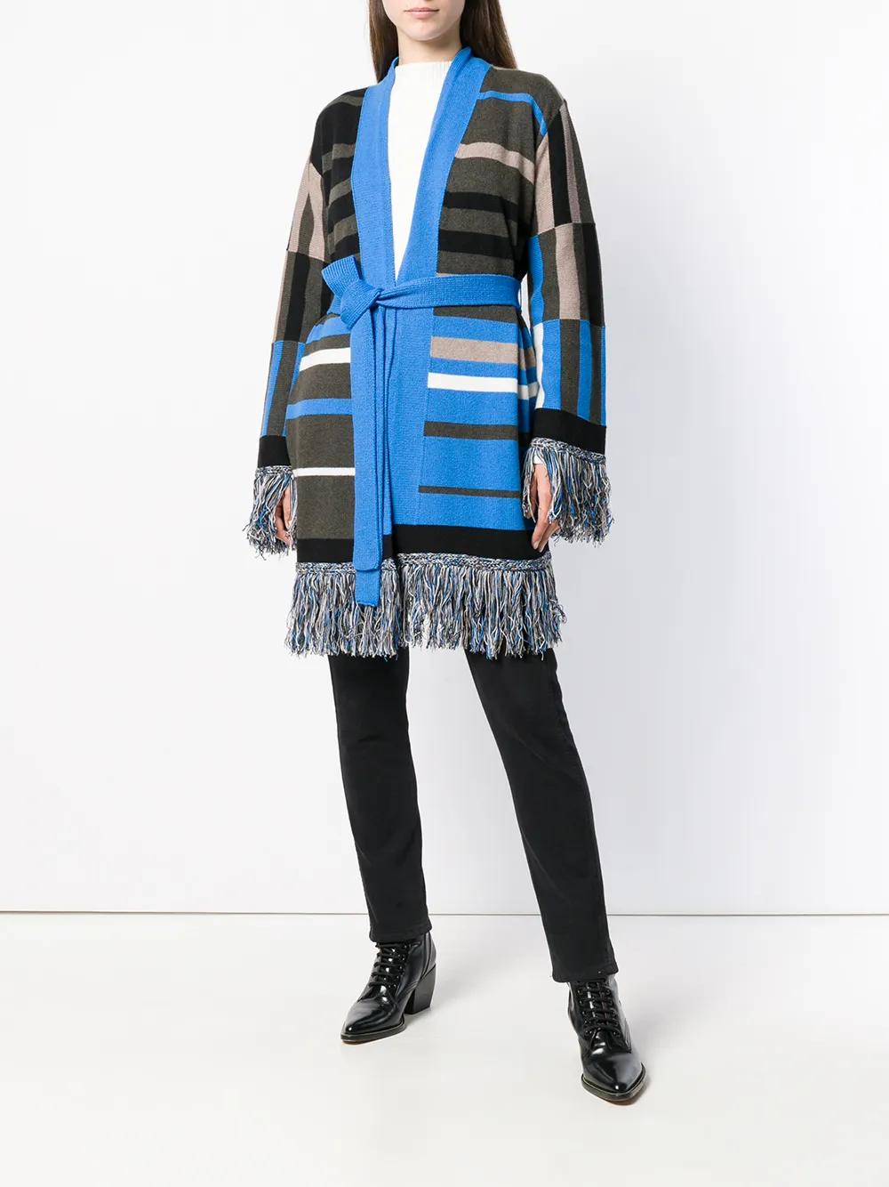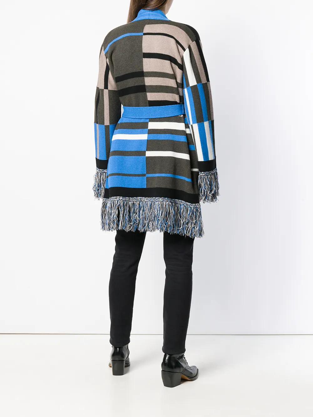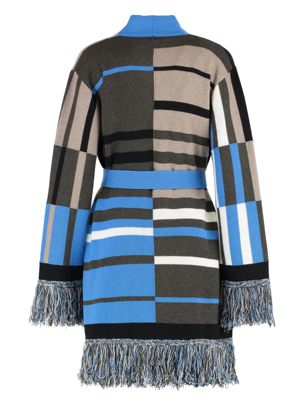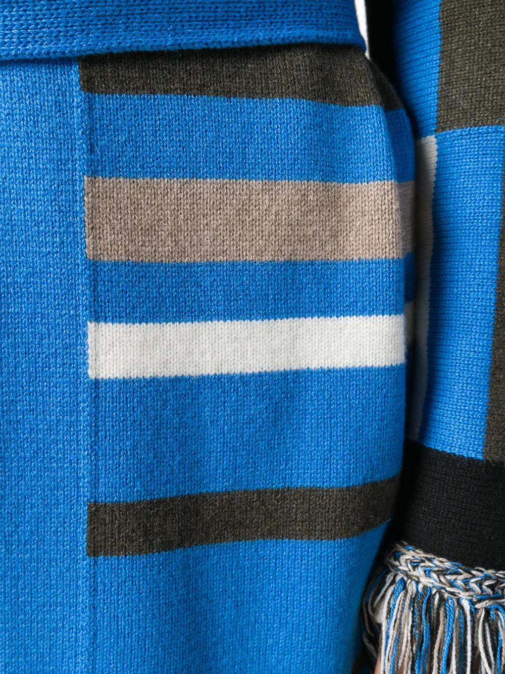 multicoloured wool and cashmere blend brown colour-block design self-tie fastening
