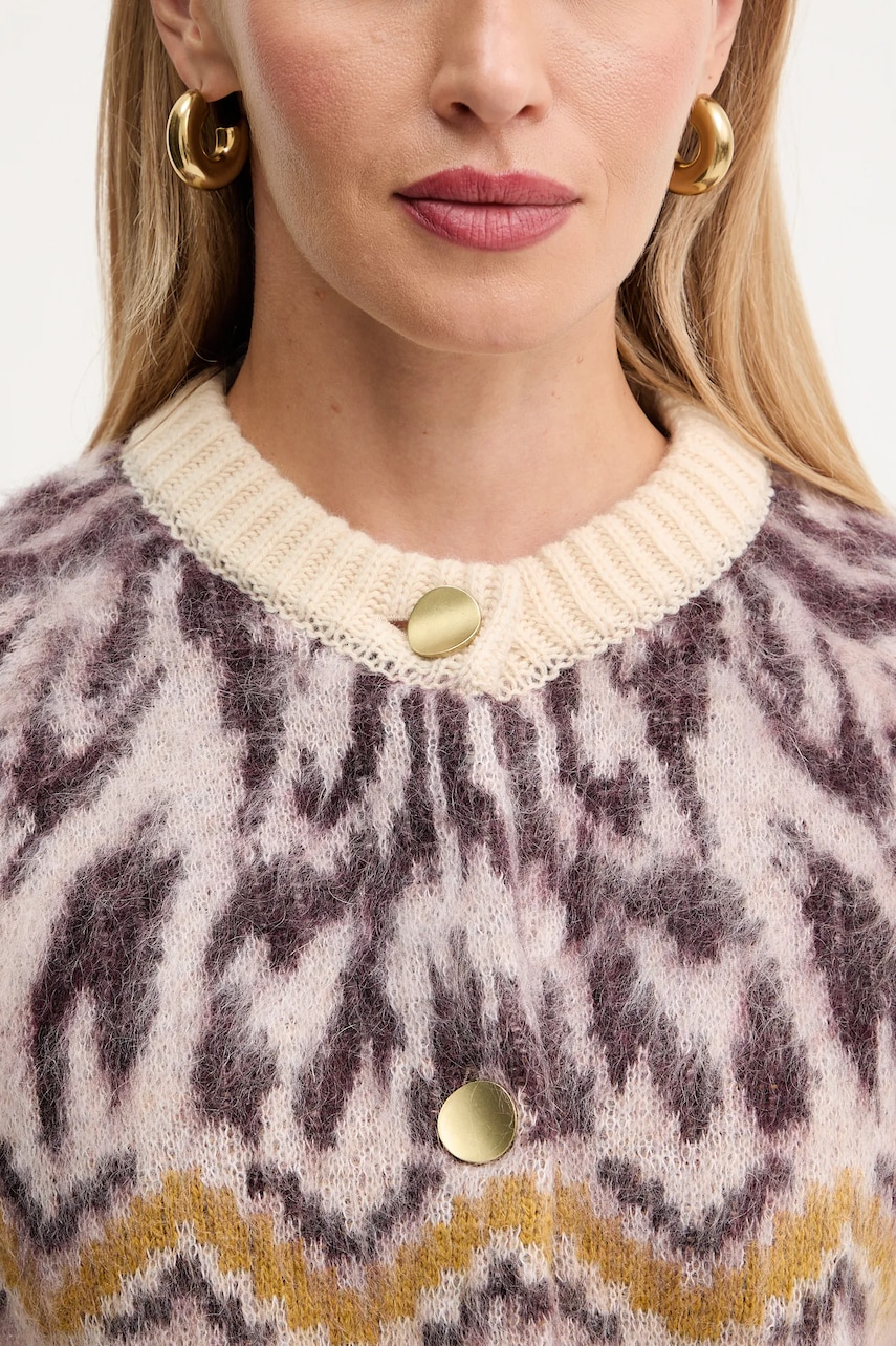 - Luźny krój zapewniający pełną swobodę ruchów. - Rękaw raglanowy, dzięki swojej konstrukcji, zapewnia większą swobodę ruchu. - Wygodne zapięcie na guziki ułatwia zakładanie i zdejmowanie. - Elastyczna dzianina o średniej grubości. - Długość rękawa(mierzona od dekoltu): 76 cm. - Długość: 56 cm. - Szerokość pod pachami: 55 cm. - Wymiary podane dla rozmiaru: 36.