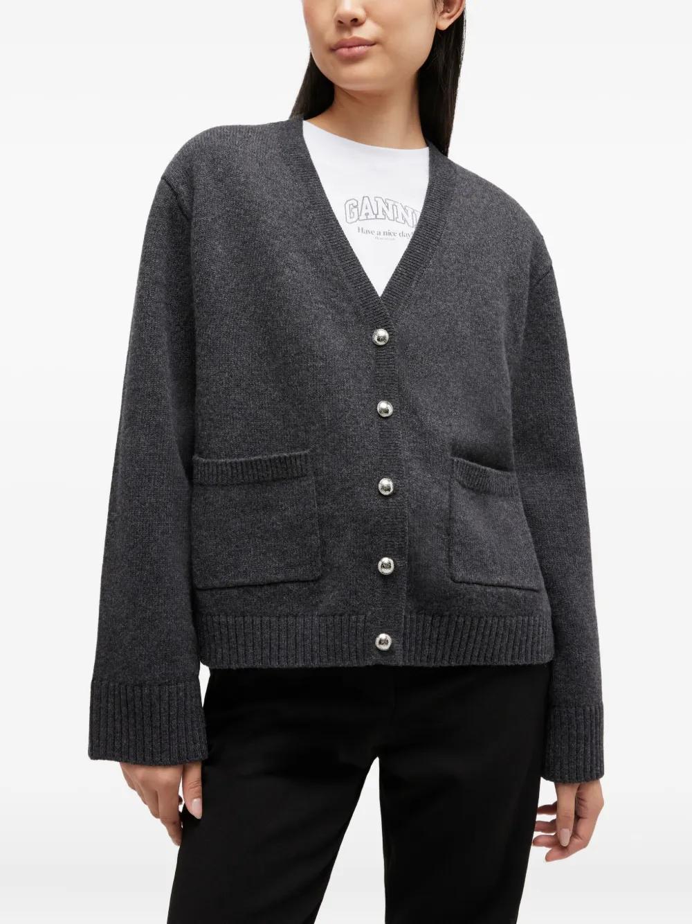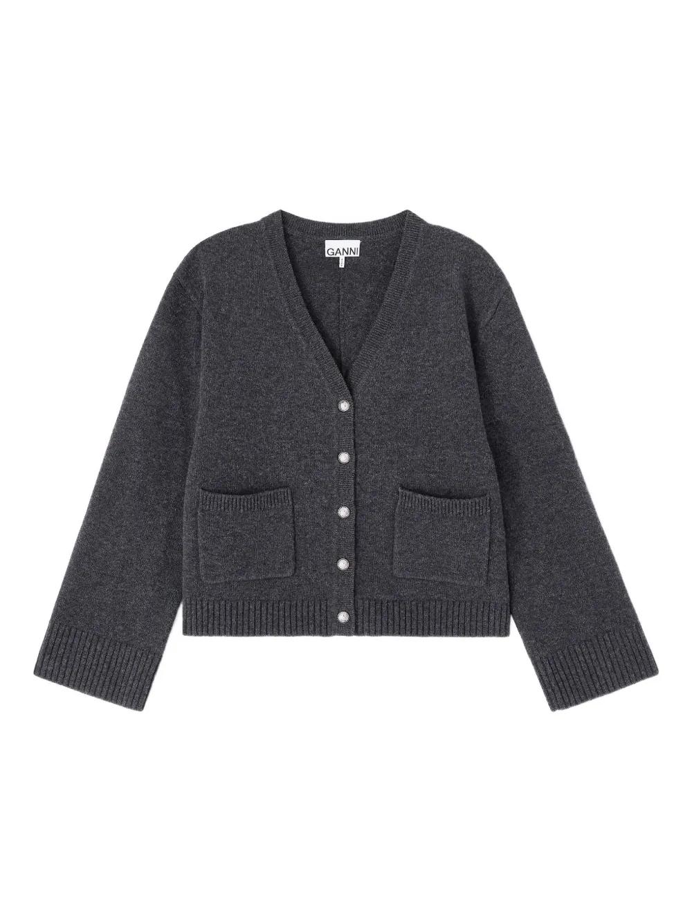 GANNI pocket button-fastening cardigan - Grey