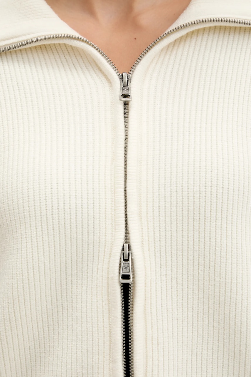 - Model wykonany z włókien, wyprodukowanych przy użyciu zrównoważonych procesów produkcyjnych, zmniejszających tym samym ich wpływ na środowisko. - Prosty, nie blokujący ruchów fason. - Zapięcie na suwak. - Rękawy i dolna krawędź wykończone wygodnym, elastycznym ściągaczem. - Elastyczna dzianina o średniej grubości. - Długość rękawa: 56 cm. - Długość: 53 cm. - Szerokość pod pachami: 42 cm. - Wymiary podane dla rozmiaru: S.