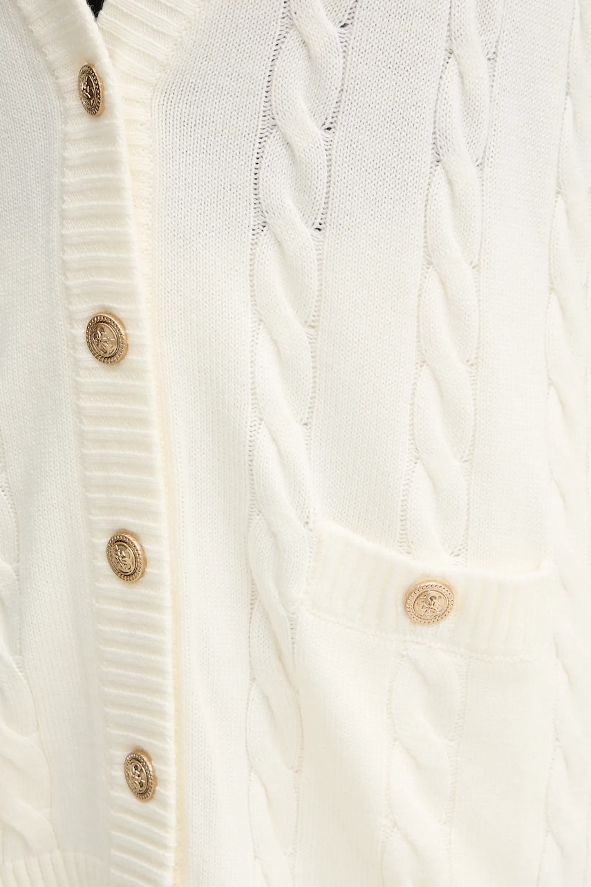 - Luźny krój zapewniający pełną swobodę ruchów. - Długi rękaw. - Krój rękawa z obniżoną linią ramion nie ogranicza mobilności. - Rękawy i dolna krawędź wykończone wygodnym, elastycznym ściągaczem. - Wygodne zapięcie na guziki ułatwia zakładanie i zdejmowanie. - Z przodu dwie zapinane na guzik kieszonki. - Długość rękawa(mierzona od dekoltu): 70 cm. - Długość: 73 cm. - Szerokość pod pachami: 60 cm. - Wymiary podane dla rozmiaru: S.