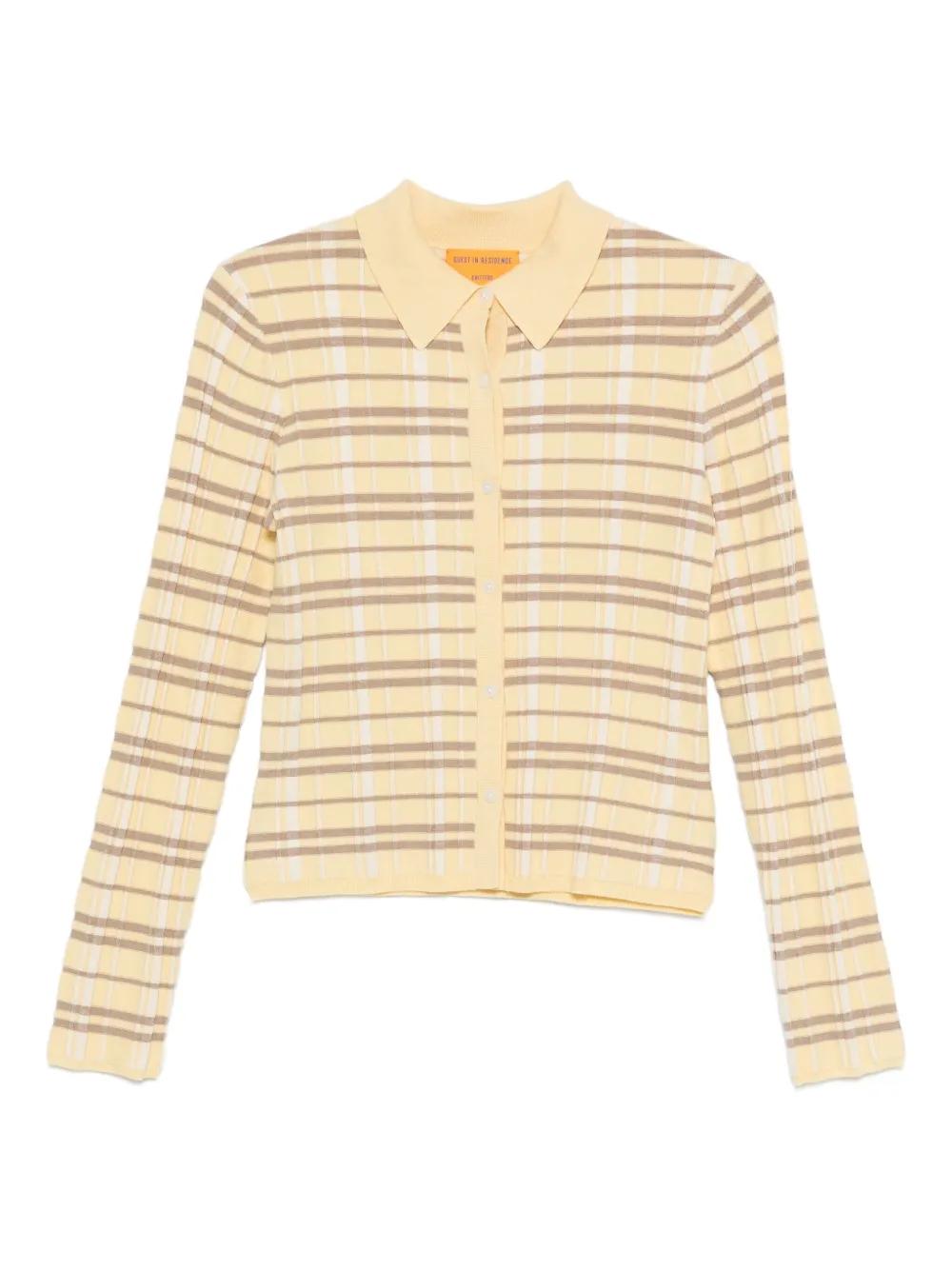 yellow stripe detail front button fastening ribbed knit long sleeves