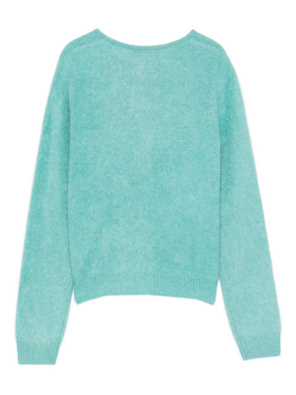 blue button fastening long sleeves ribbed trims cashmere