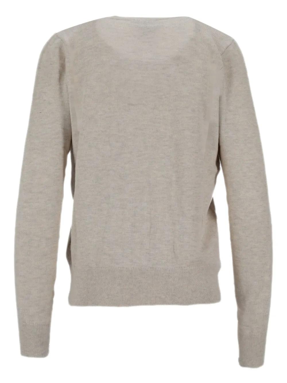 beige button fastening V-neck ribbed trims long sleeves knitted construction