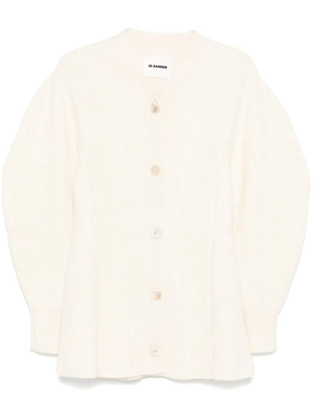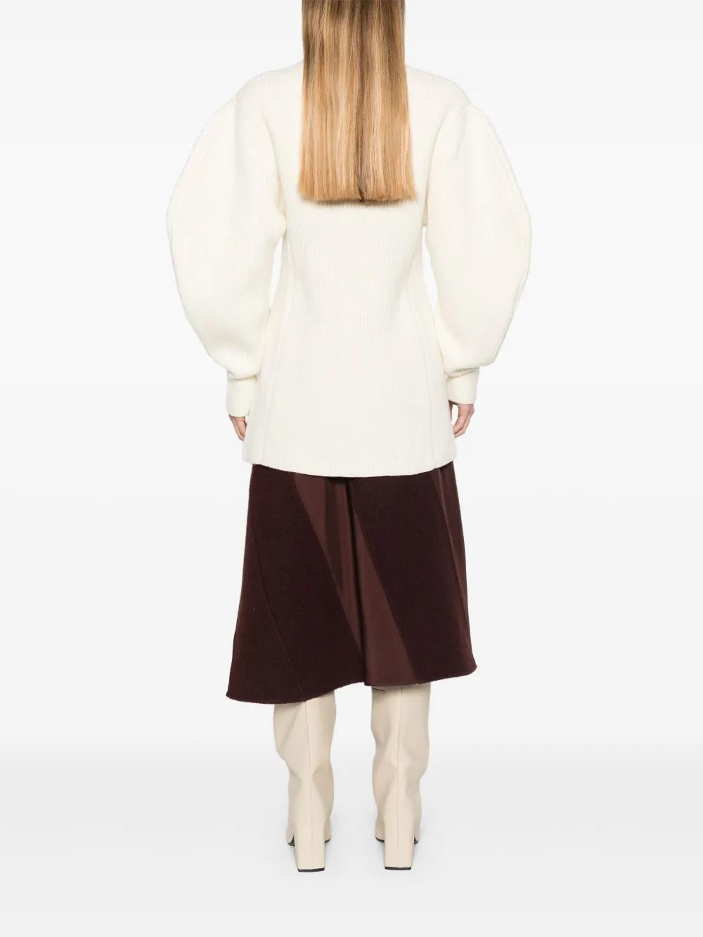 white wool ribbed knit front button fastening ribbed V-neck long puff sleeves ribbed cuffs