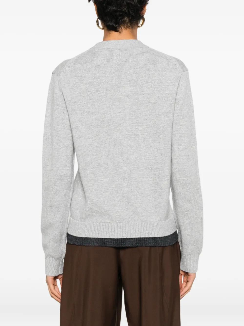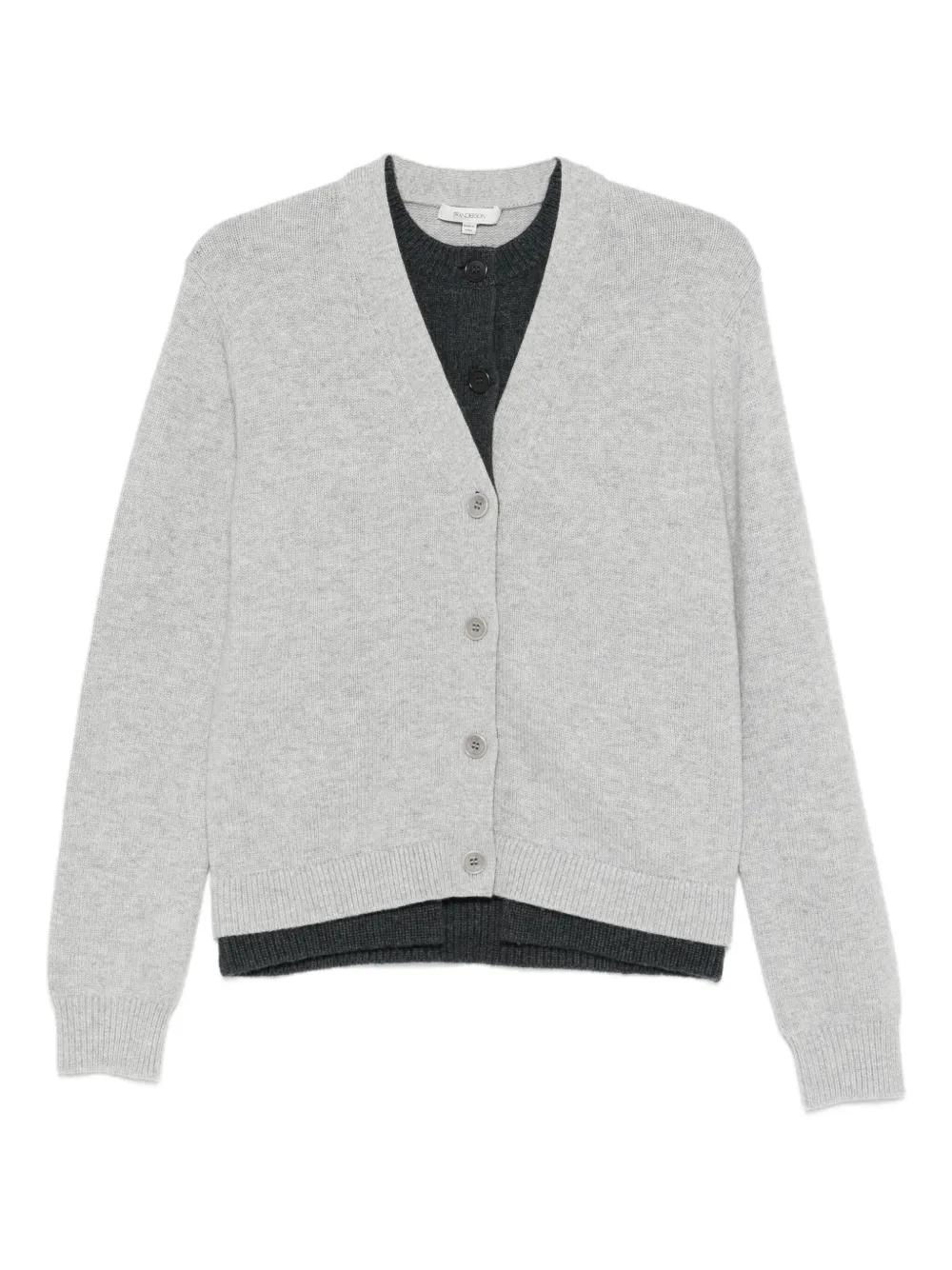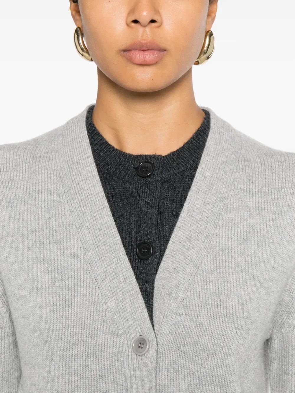 charcoal marl button fastening V-neck long sleeves ribbed hem ribbed cuffs