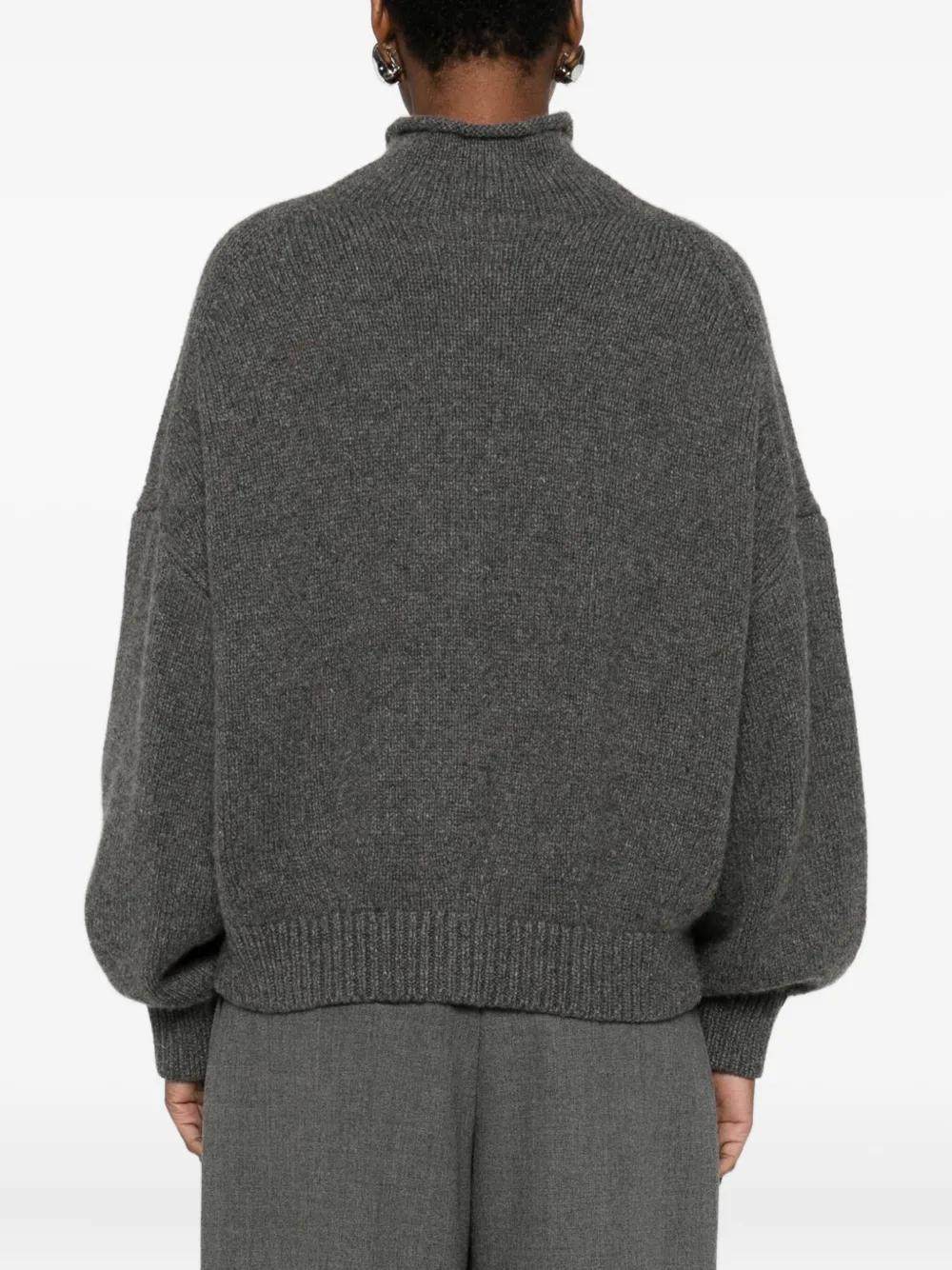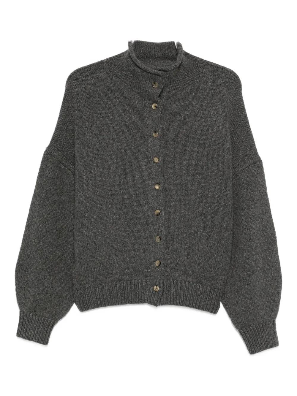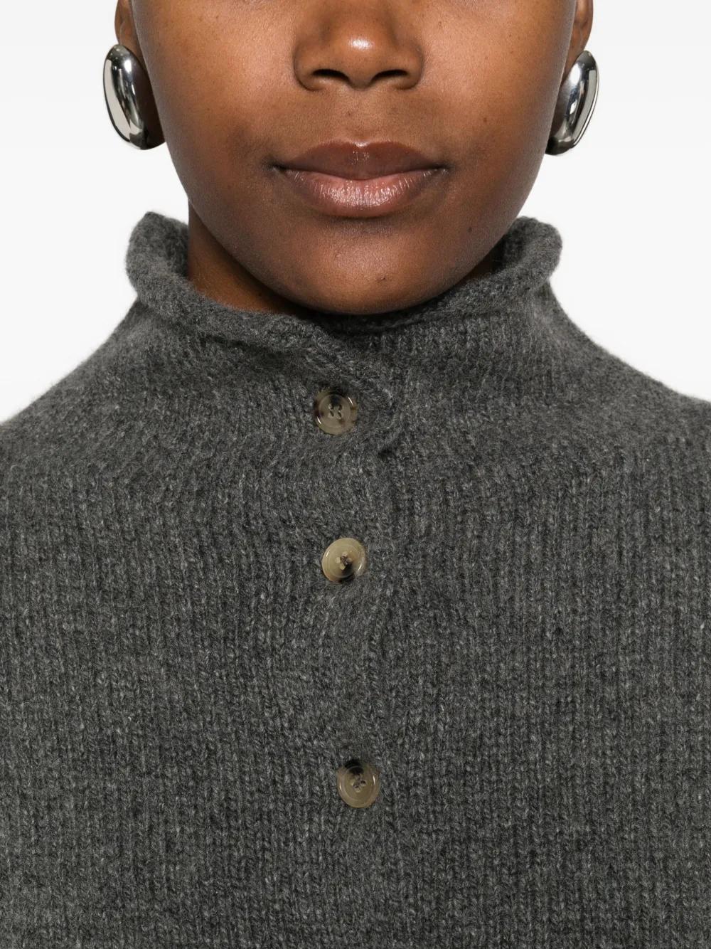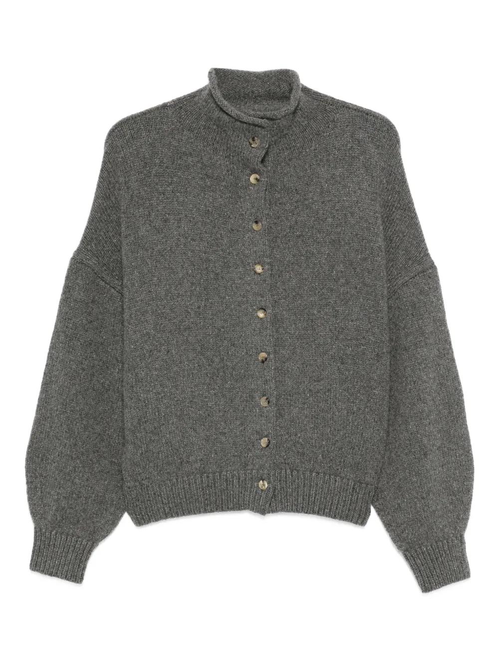 grey button fastening ribbed hem ribbed cuffs high neck long sleeves