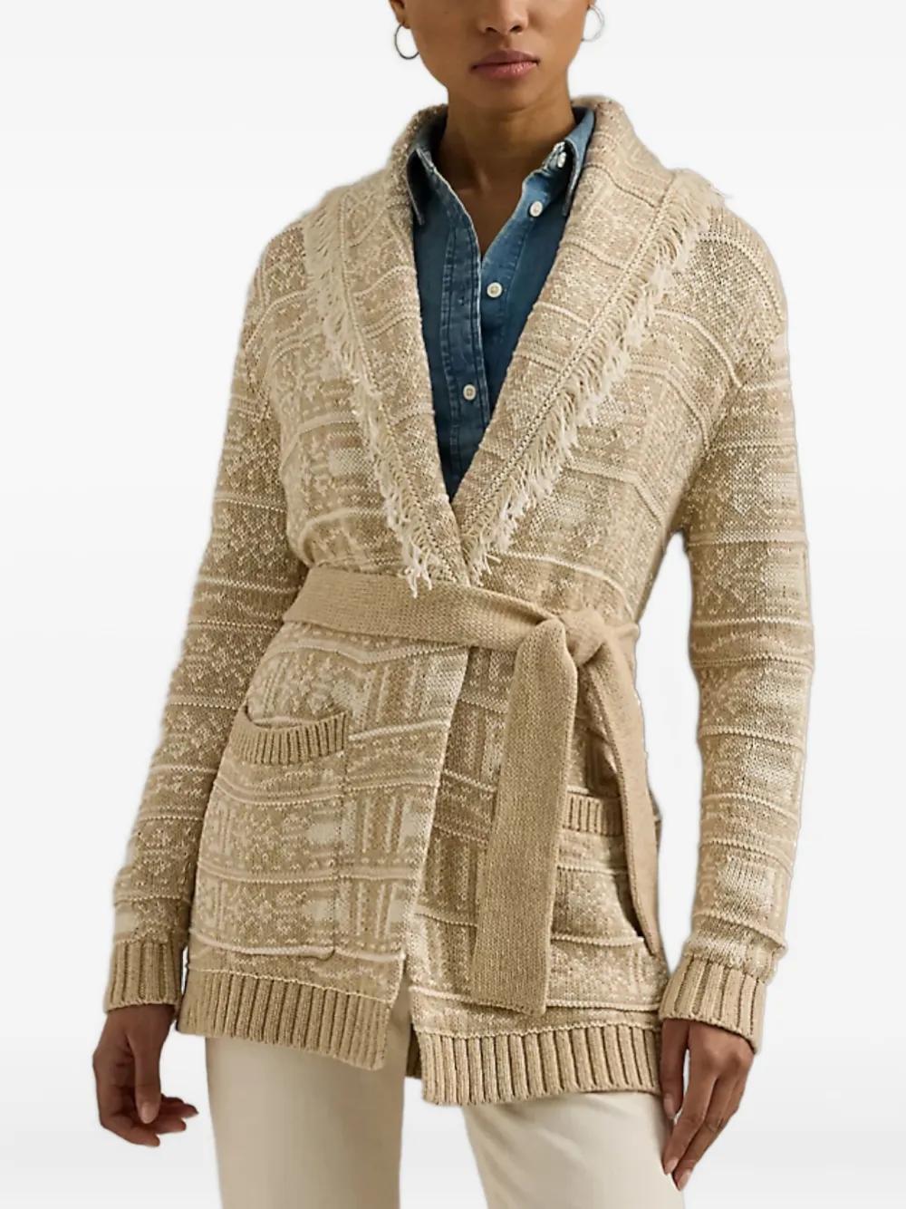 Lauren Ralph Lauren fringed-detail geometric-motif cardigan - Neutrals