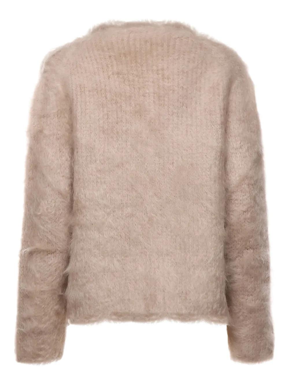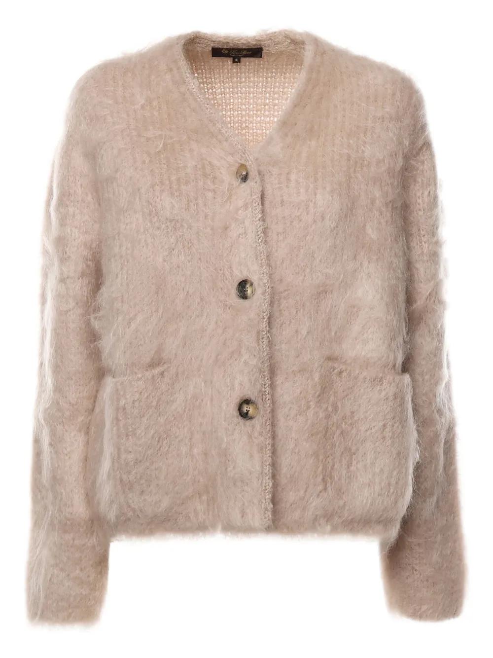 beige front button fastening V-neck front patch pockets long sleeves mohair-cashmere blend