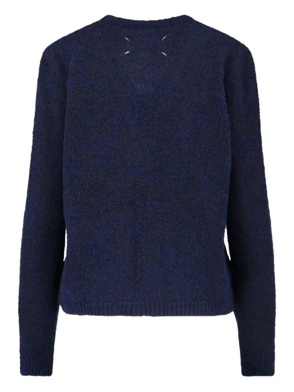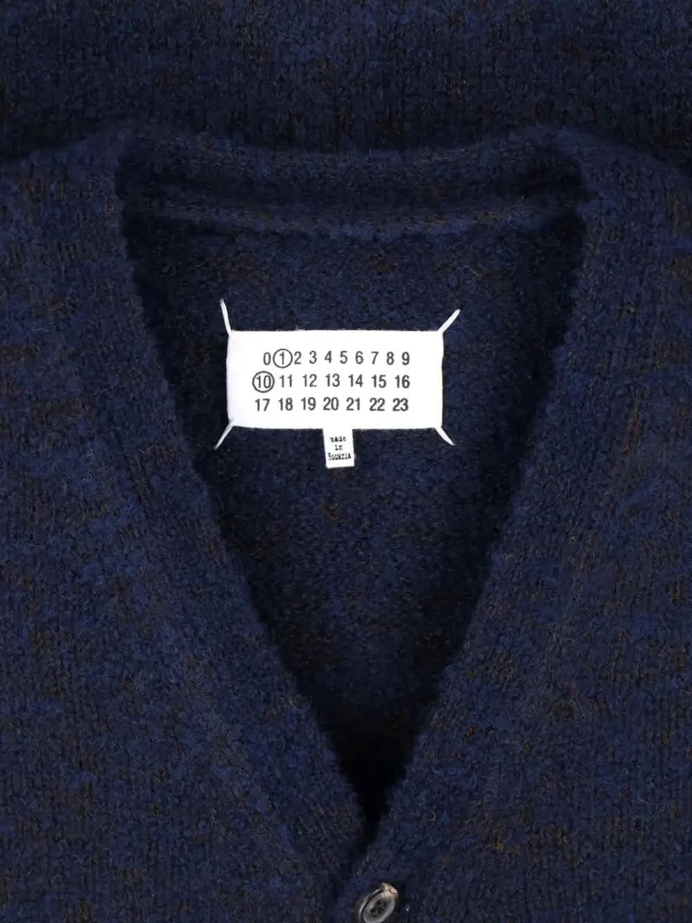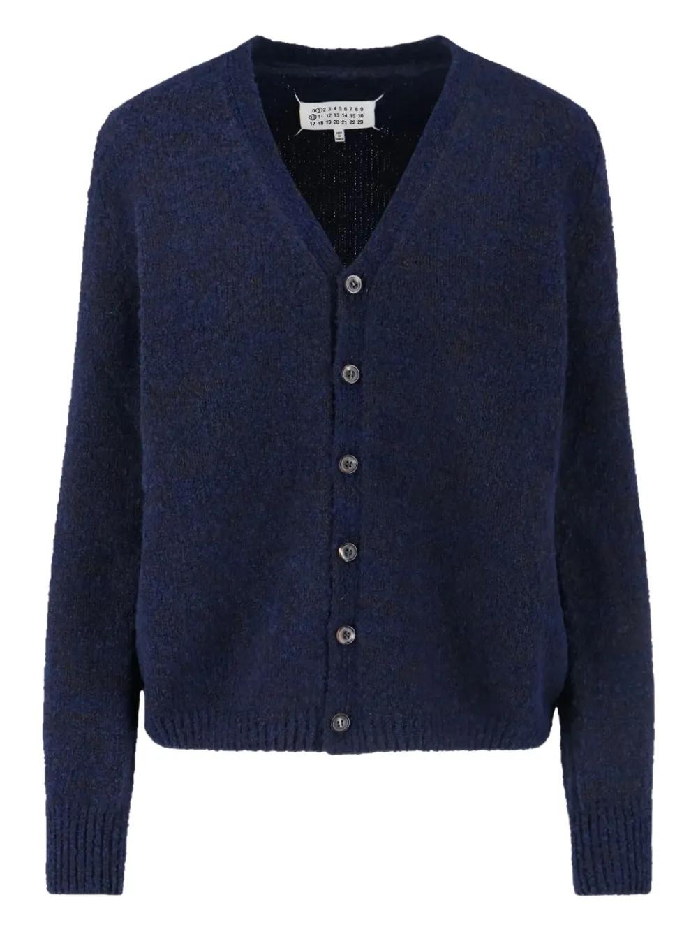 blue v-neck button fastening long sleeves ribbed hem ribbed cuffs