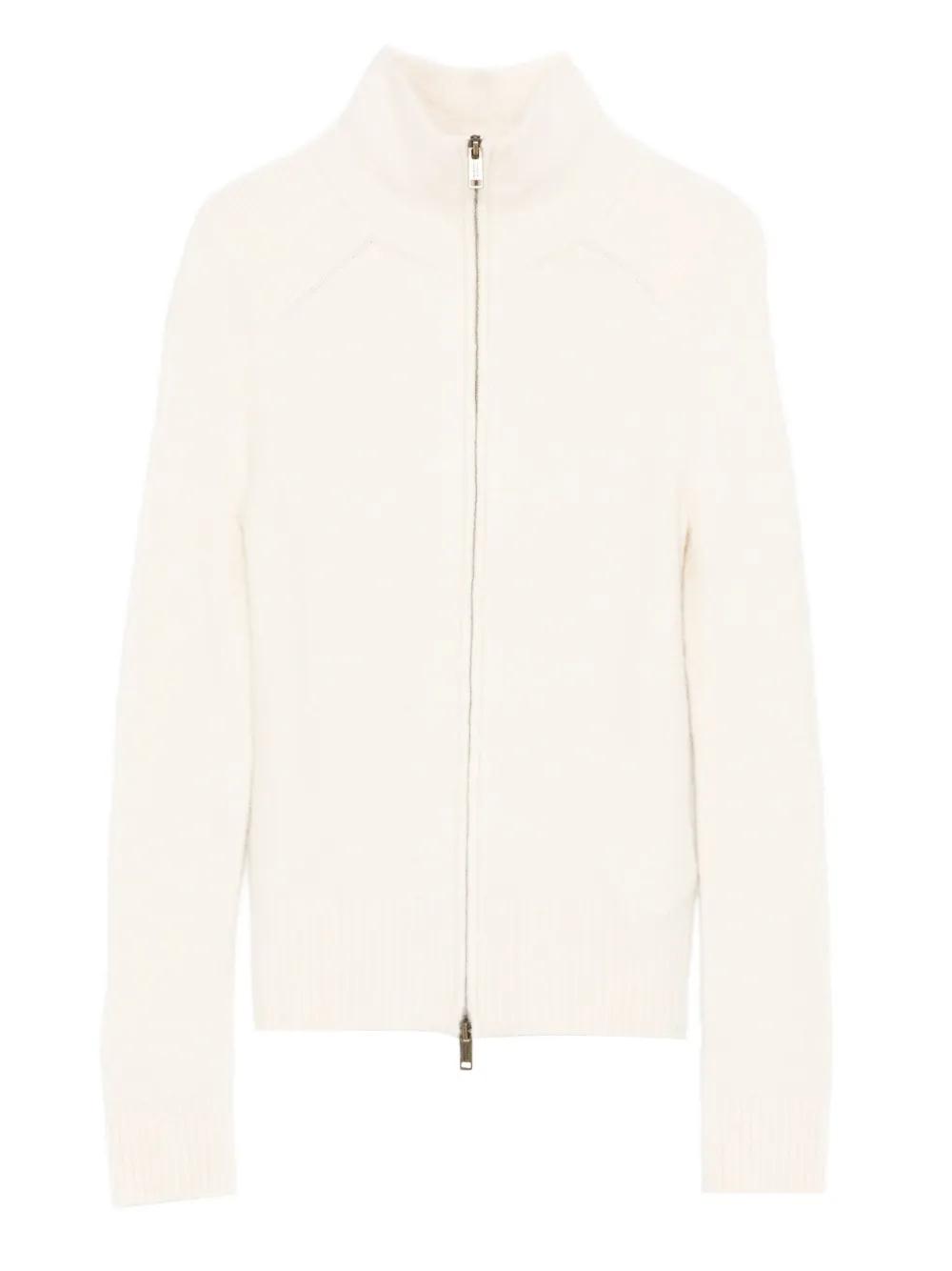 ecru fron zip fastening long sleeves ribbed cuffs and hem