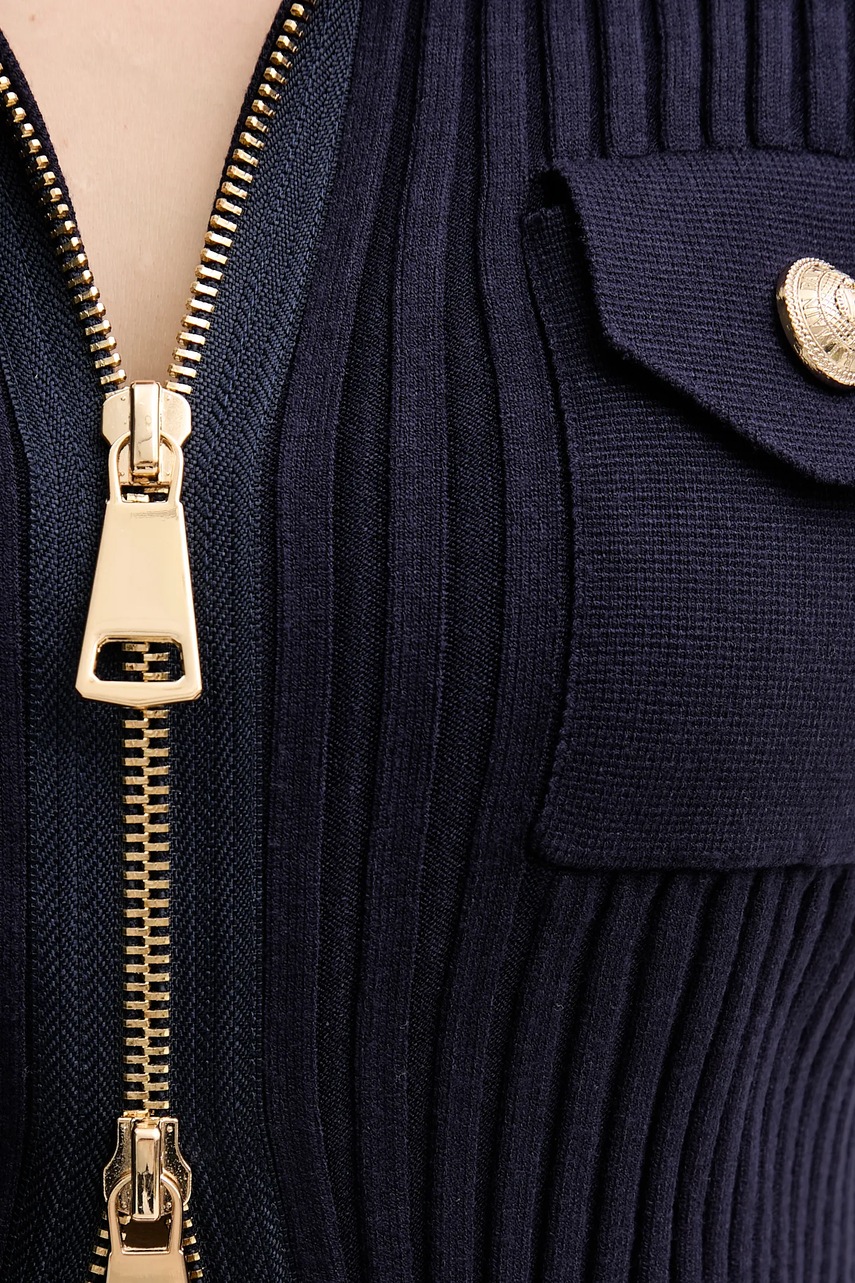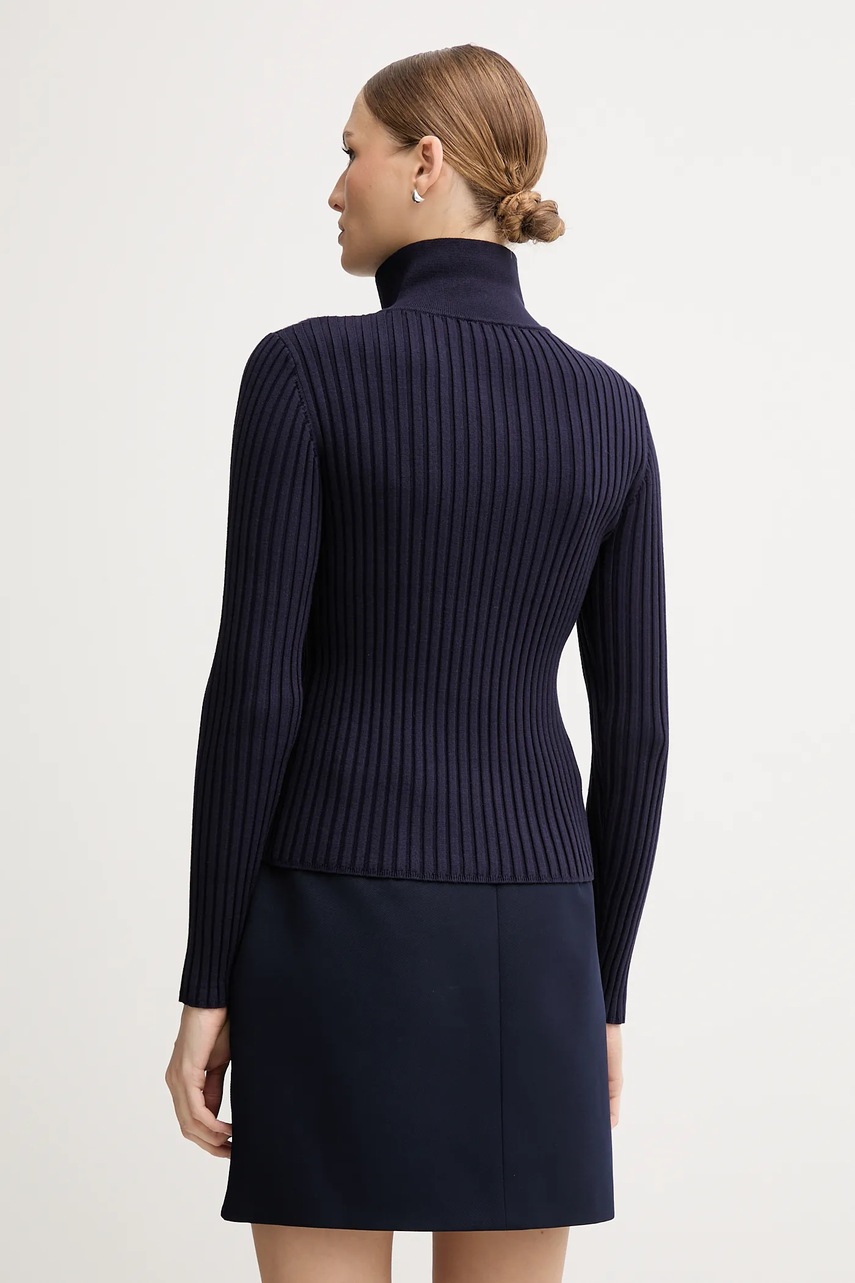 - Sweter w fasonie slim jest dopasowany do ciała i naturalnie podkreśla sylwetkę. Odpowiedni do eleganckich, jak i casualowych stylizacji. - Podwyższony kołnierz gwarantuje dodatkową ochronę przed chłodem. - Zapięcie na dwustronny suwak. - Długi rękaw. - Kieszonki na piersi. - Długość rękawa: 58,5 cm. - Długość: 56 cm. - Szerokość pod pachami: 40 cm. - Wymiary podane dla rozmiaru: 36.