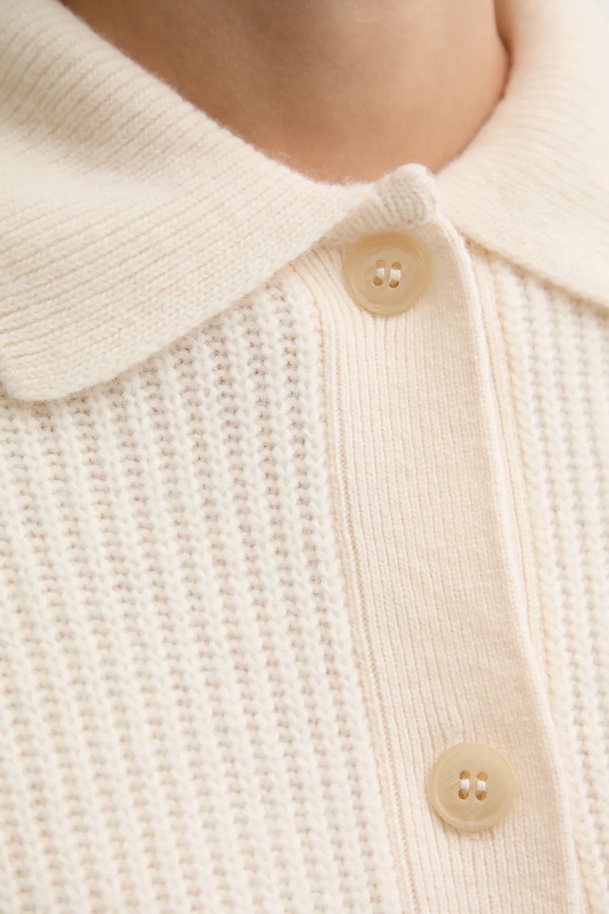 - Produkt posiada certyfikat zgodny z Responsible Wool Standard (RWS). Materiał, z którego został wykonany zawiera wełnę pochodzącą z gospodarstw, które są niezależnie certyfikowane w zakresie dobrostanu zwierząt i wymagań dotyczących gospodarowania gruntami. - Kardigan w fasonie oversize zapewnia komfort i swobodę ruchów. Pasuje do różnych stylów, podkreślając casualowy charakter stylizacji. - Wygodne zapięcie na guziki ułatwia zakładanie i zdejmowanie. - Model z kołnierzykiem. - Krój rękawa z obniżoną linią ramion nie ogranicza mobilności. - Gruba, elastyczna dzianina. - Długość rękawa(mierzona od dekoltu): 74 cm. - Długość: 50 cm. - Szerokość pod pachami: 52 cm. - Wymiary podane dla rozmiaru: S.