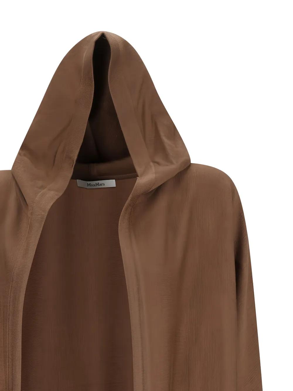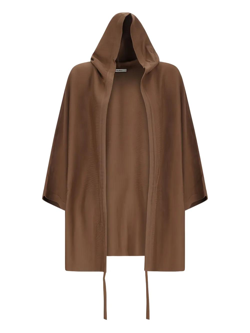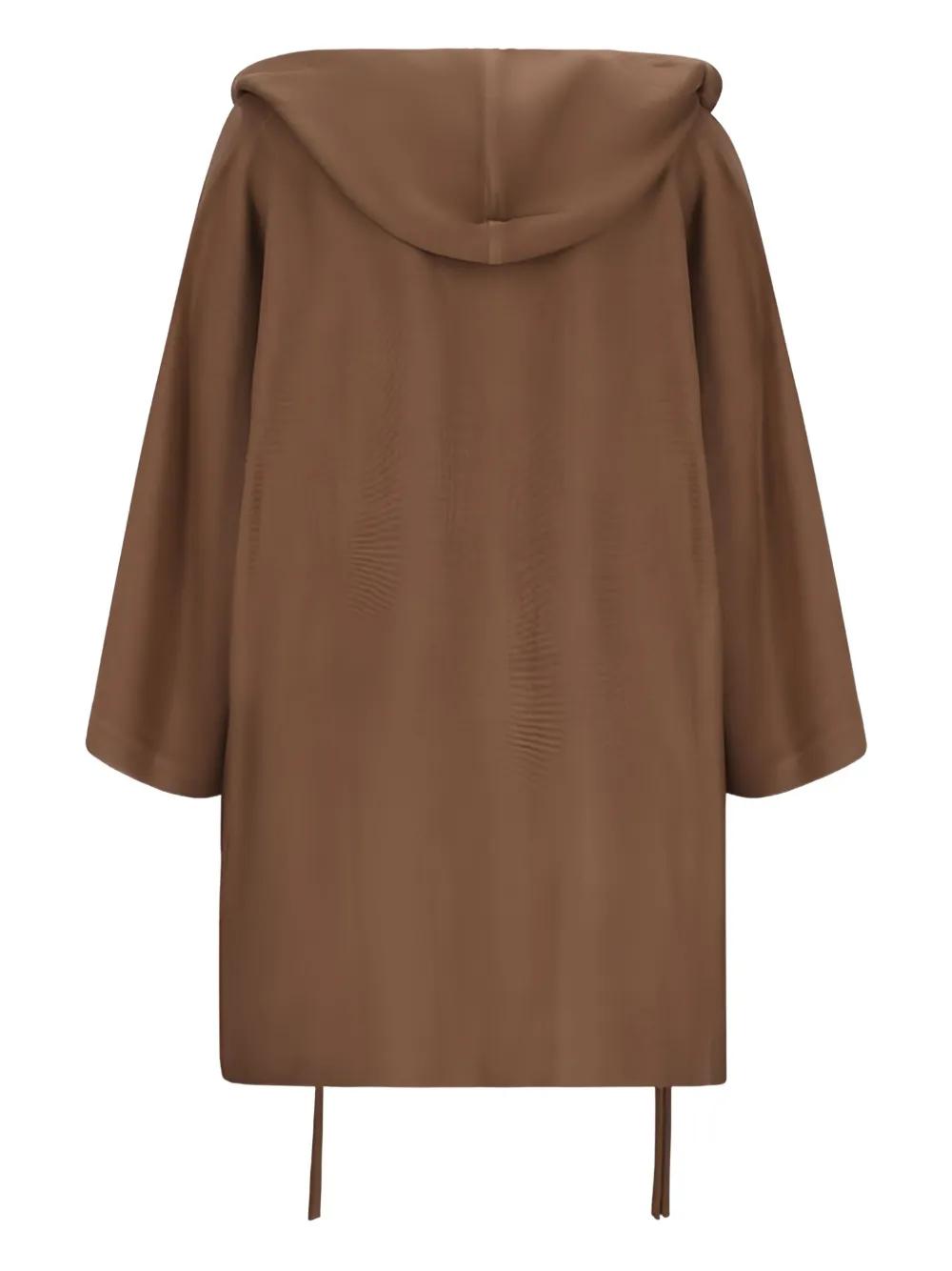 brown hooded neckline drawstring fastening three-quarter sleeves straight hemline