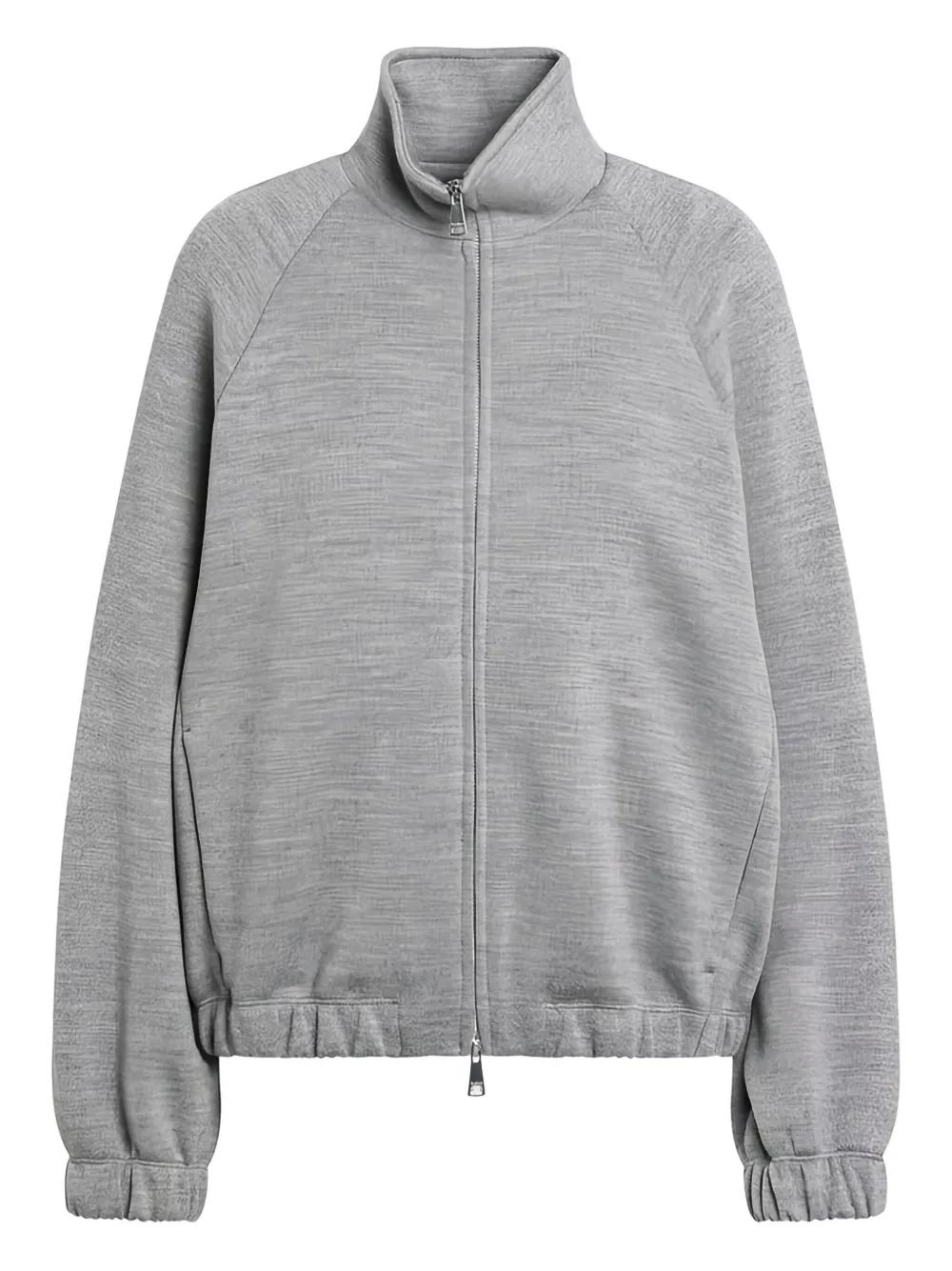 light grey zip fastening high neck elasticated hem elasticated cuffs logo detail