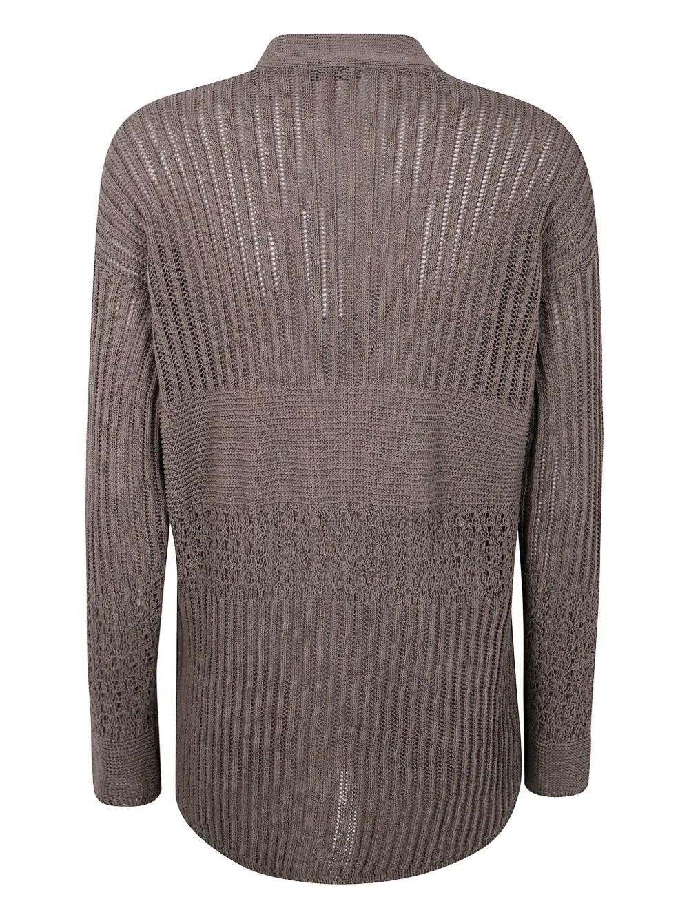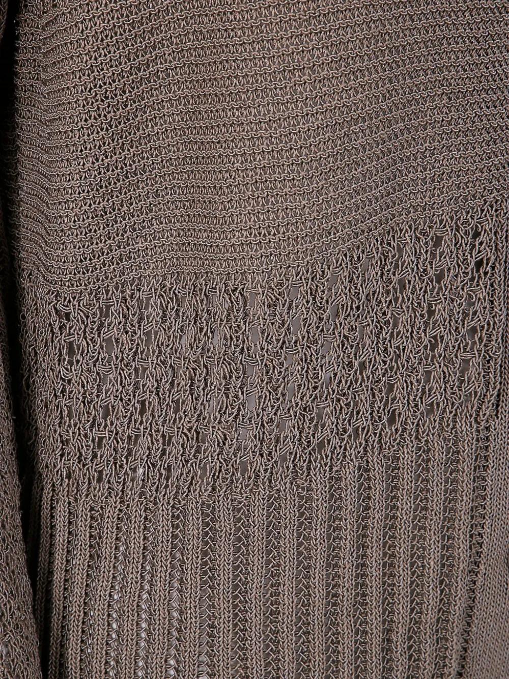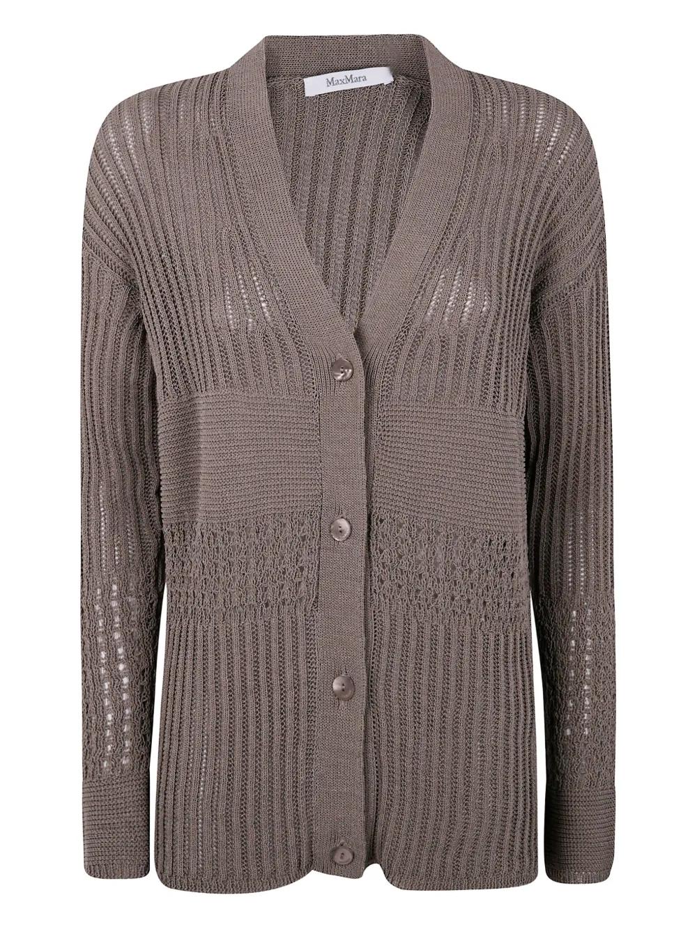 beige ribbed knit V-neck button fastenings textured panel design long sleeves