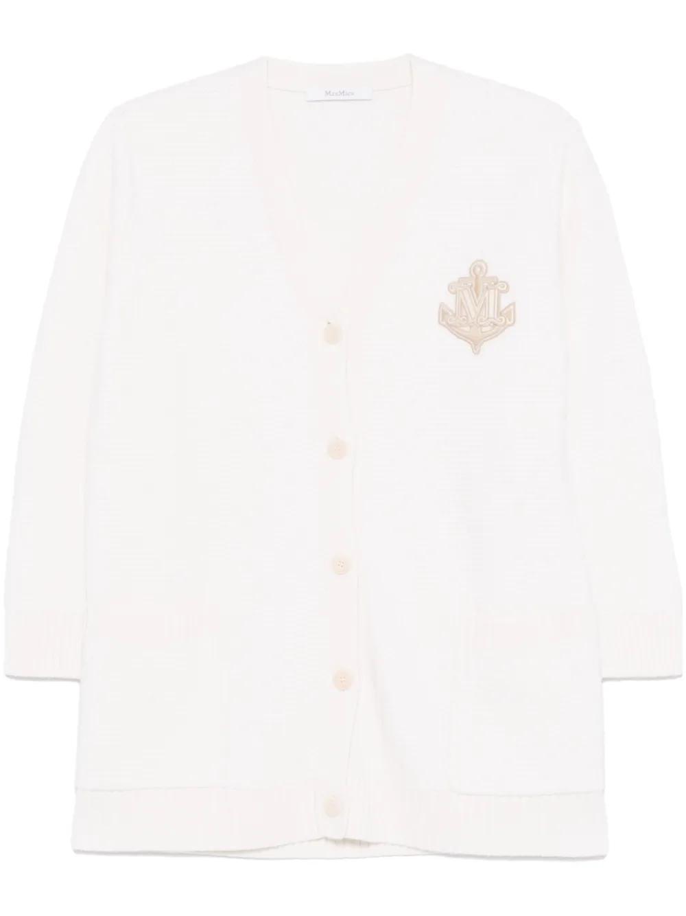white front button fastening ribbed V-neck long sleeves two side patch pockets