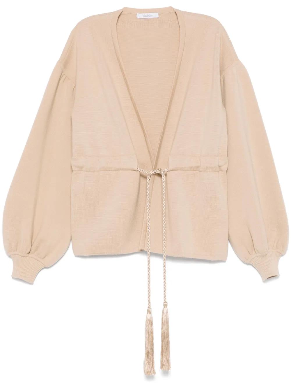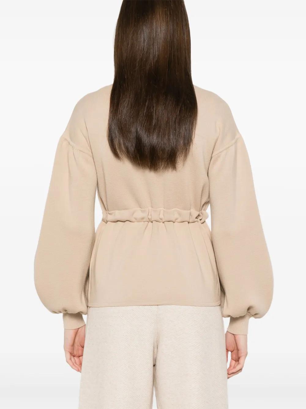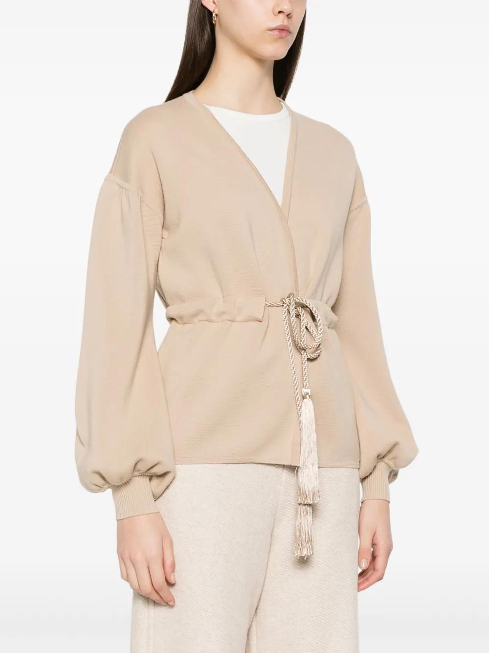 beige drawstring fastening waist V-neck drop shoulder long sleeves
