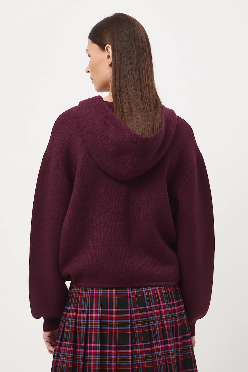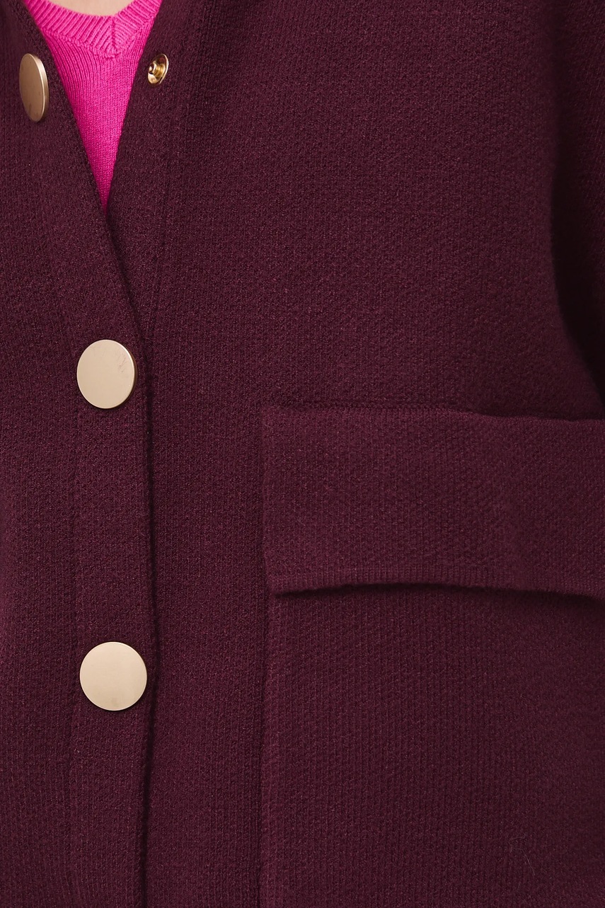 - Fason oversize. - Długi rękaw. - Obniżona linia ramion. - Rękawy wykończone ściągaczem. - Model z kapturem. - Zapięcie na zatrzaski. - Z przodu dwie kieszonki z patkami. - Dolna krawędź wykończona troczkami ze stoperami, które zapewniają indywidualne dopasowanie. - Gładka dzianina. - Długość rękawa(mierzona od kaptura): 73 cm. - Długość: 56,5 cm. - Szerokość w biuście: 59 cm. - Wymiary podane dla rozmiaru: S.