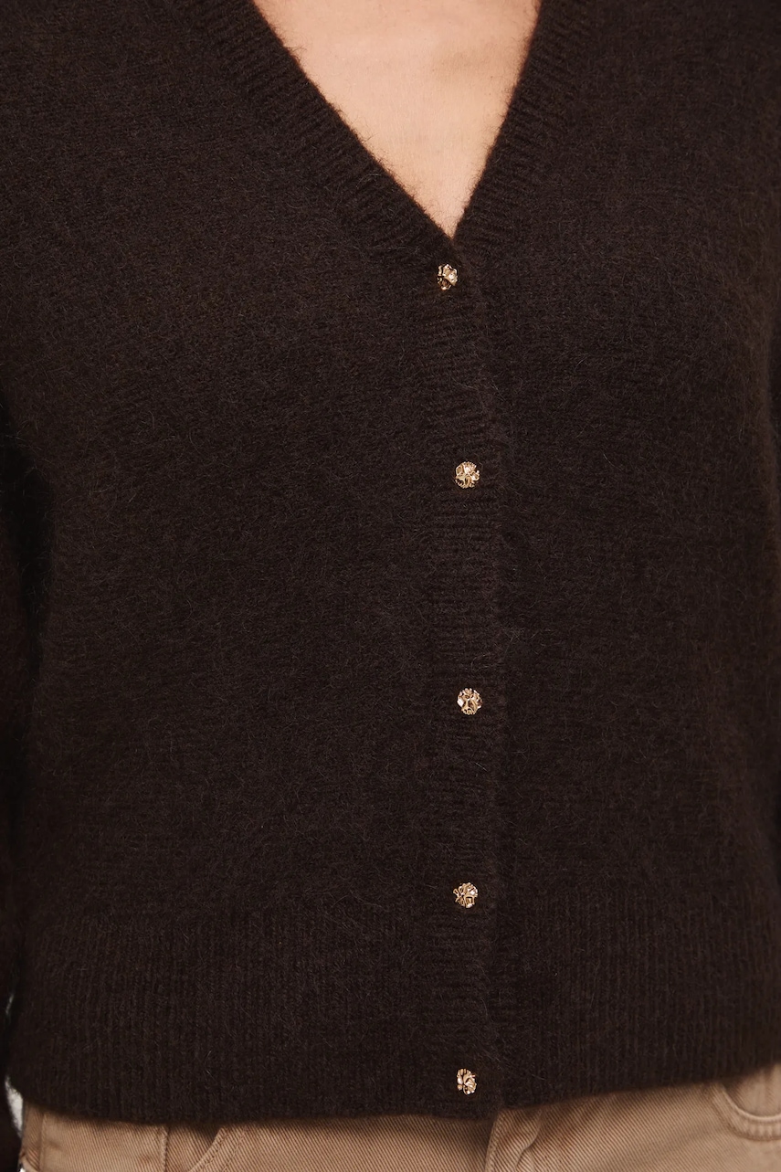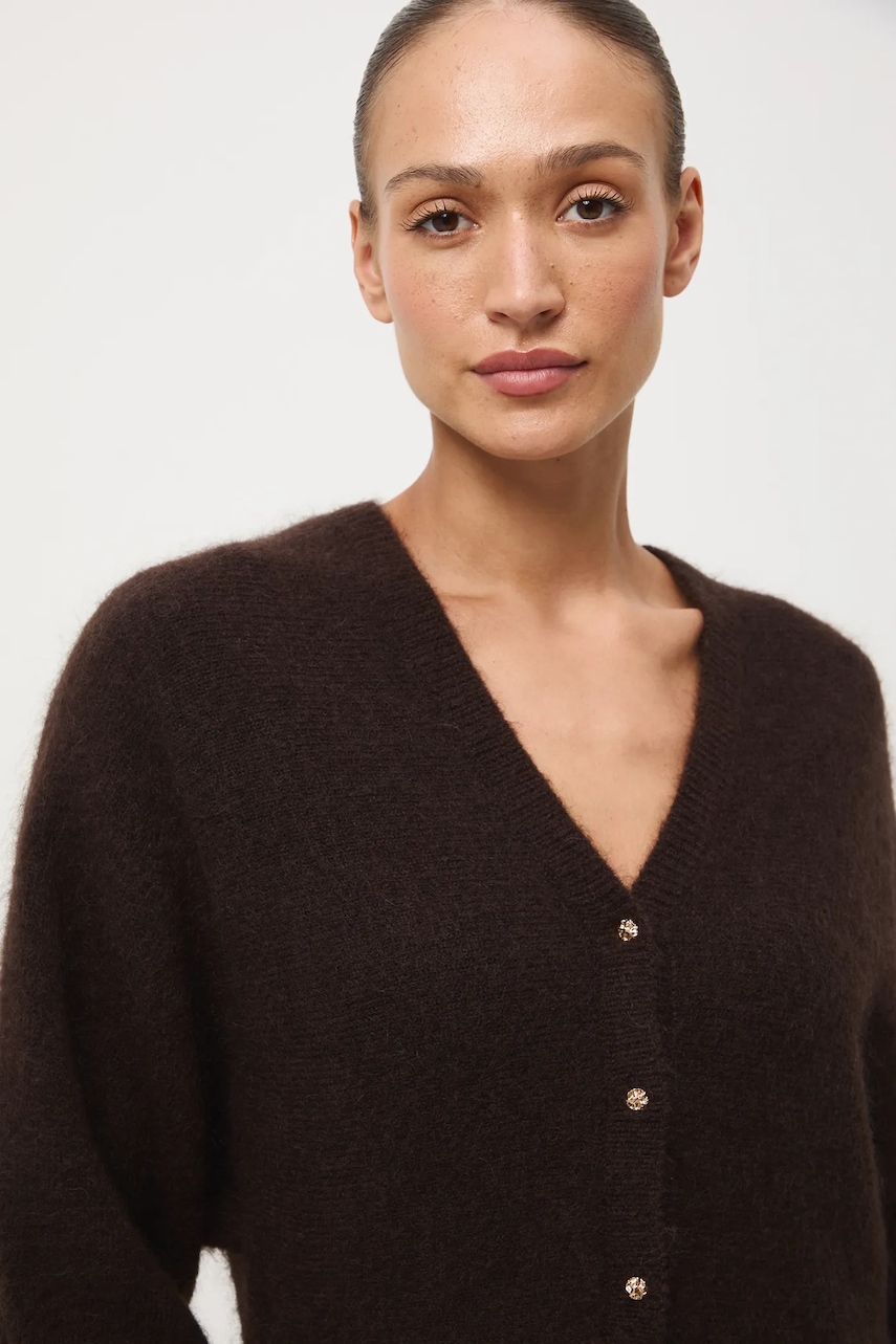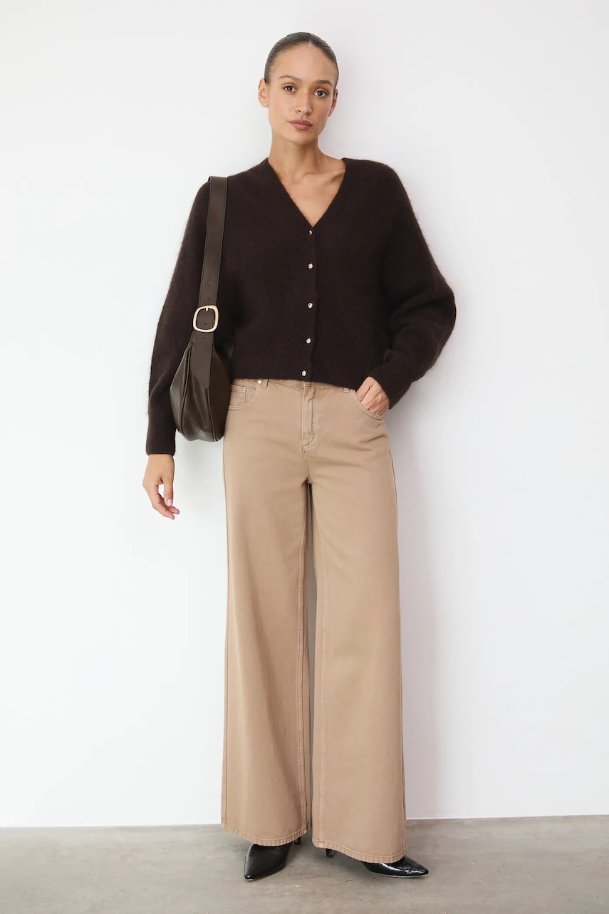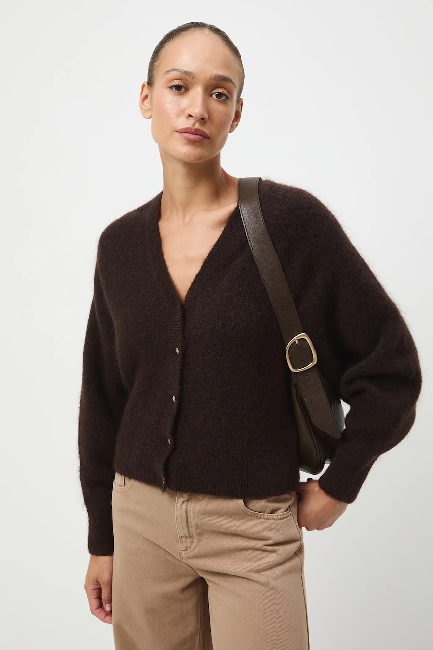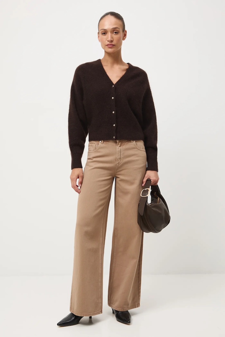 - Kardigan w fasonie regular zapewnia wygodę i uniwersalny wygląd. Delikatnie dopasowuje się do sylwetki, ale nie podkreśla jej nadmiernie. Klasyczny i prosty, sprawdzi się zarówno w eleganckich, jak i casualowych stylizacjach. - Długi, kimonowy rękaw. - Spiczasty dekolt. - Zapięcie na guziki. - Wykończenie ze ściągacza. - Melanżowa dzianina. - Model wykonany z dzianiny z moherem i wełną. - Długość rękawa(mierzona od dekoltu): 75 cm. - Długość: 57 cm. - Wymiary podane dla rozmiaru: S.