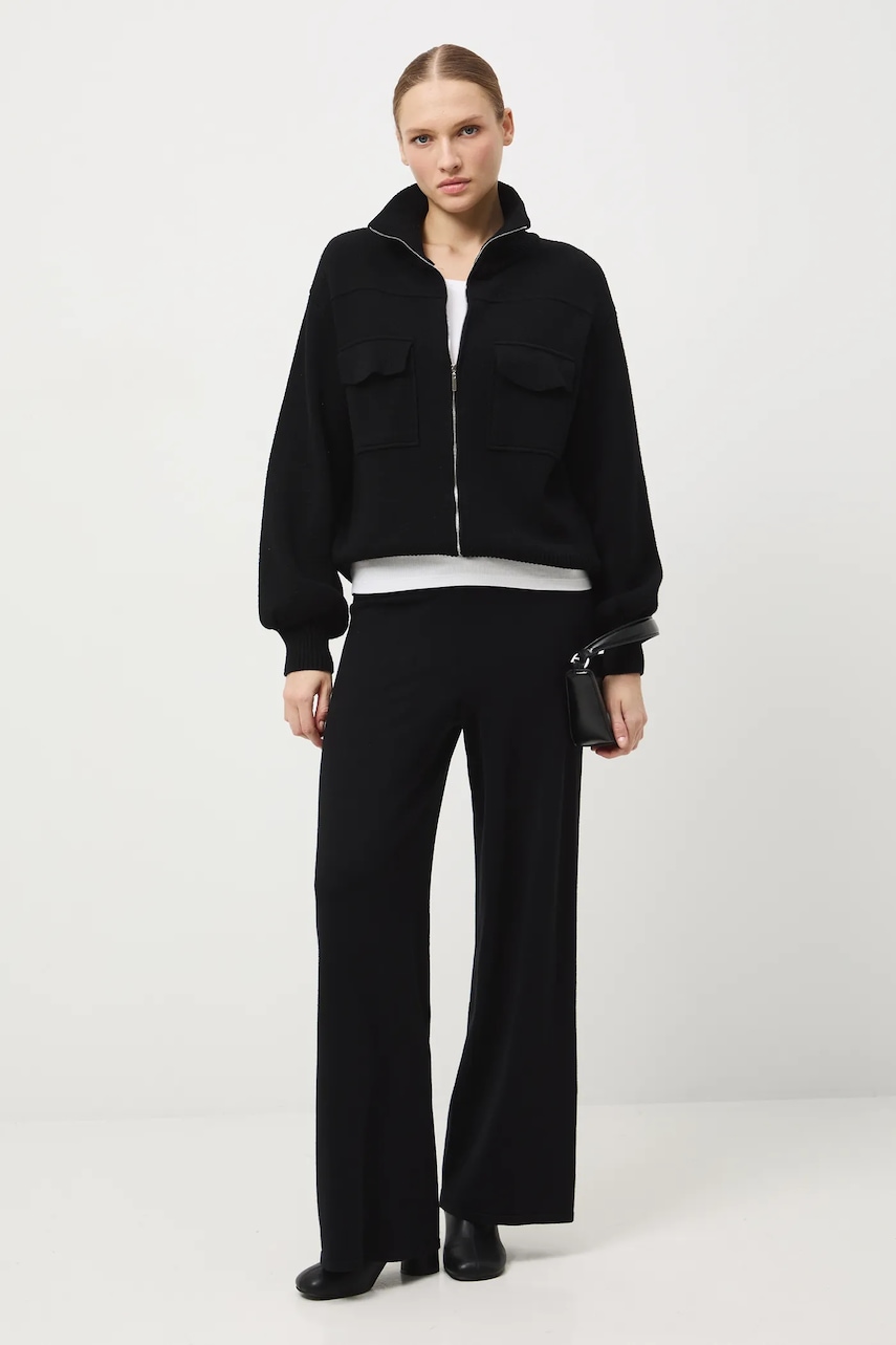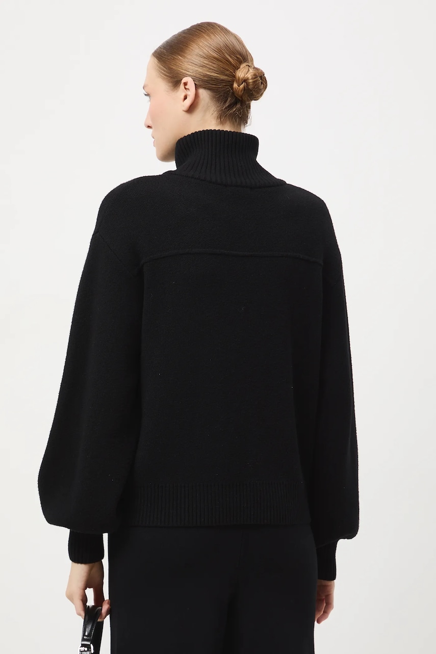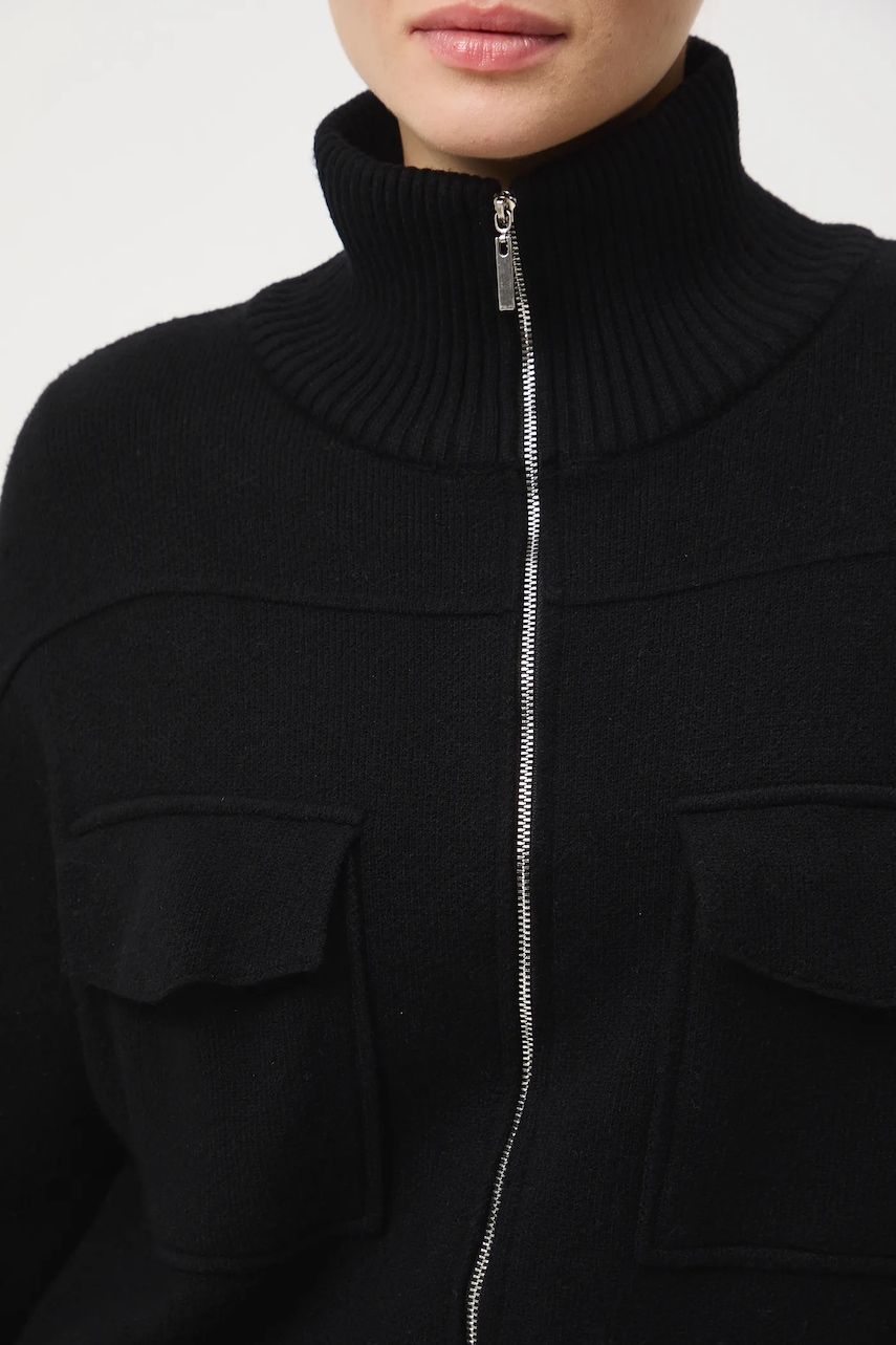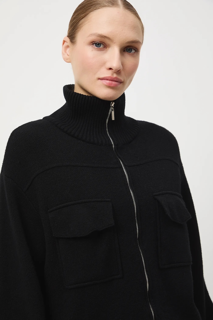 - Fason regular. - Długi rękaw. - Obniżona linia ramion. - Model z półgolfem. - Zapięcie na suwak. - Kieszonki na piersi. - Wykończenie ze ściągacza. - Gładka dzianina. - Długość rękawa(mierzona od kołnierza): 72,1 cm. - Długość: 57 cm. - Szerokość w biuście: 56,5 cm. - Wymiary podane dla rozmiaru: S.
