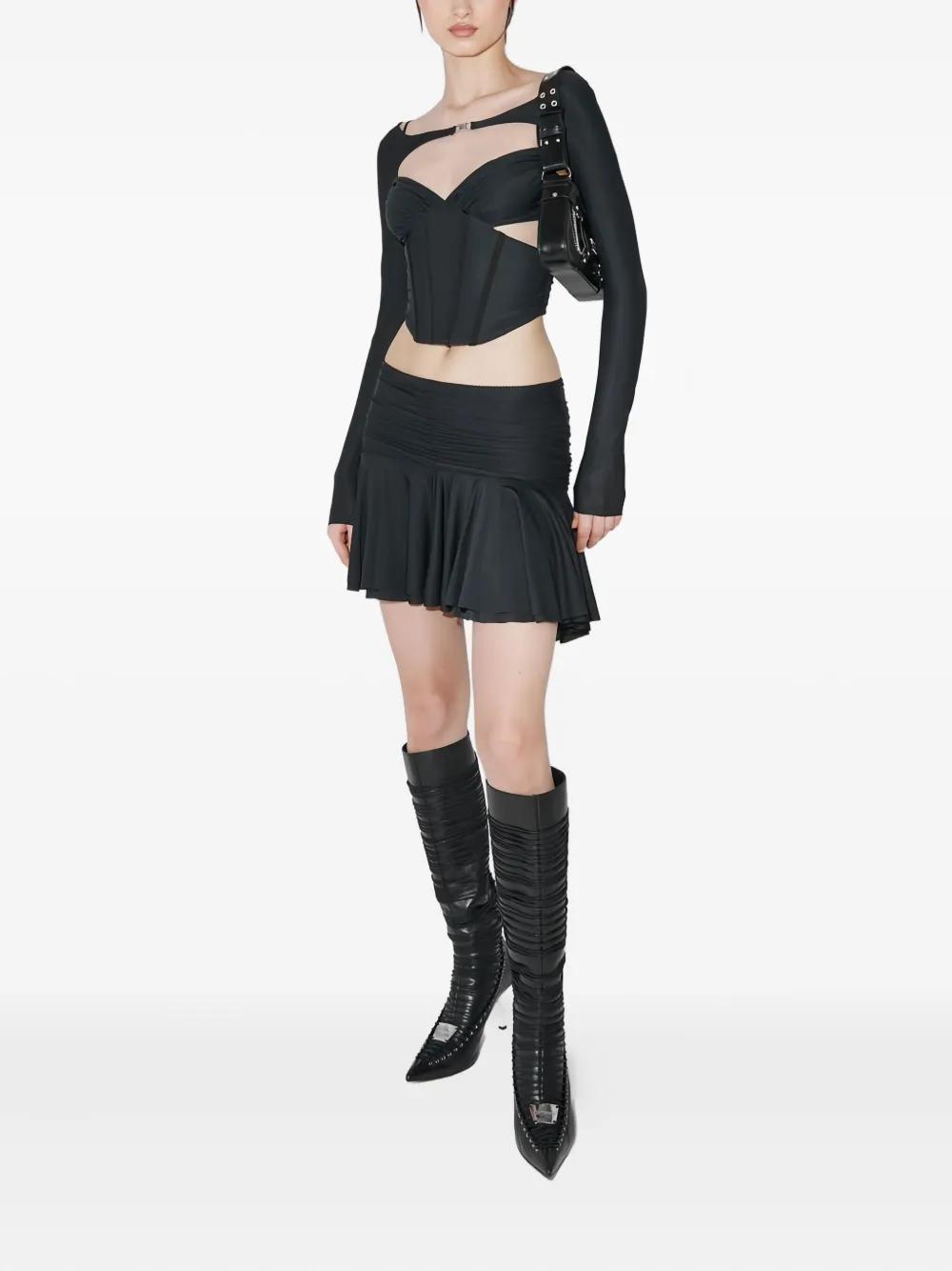 black logo hook-eye fastening silver-tone hardware long sleeves bolero style