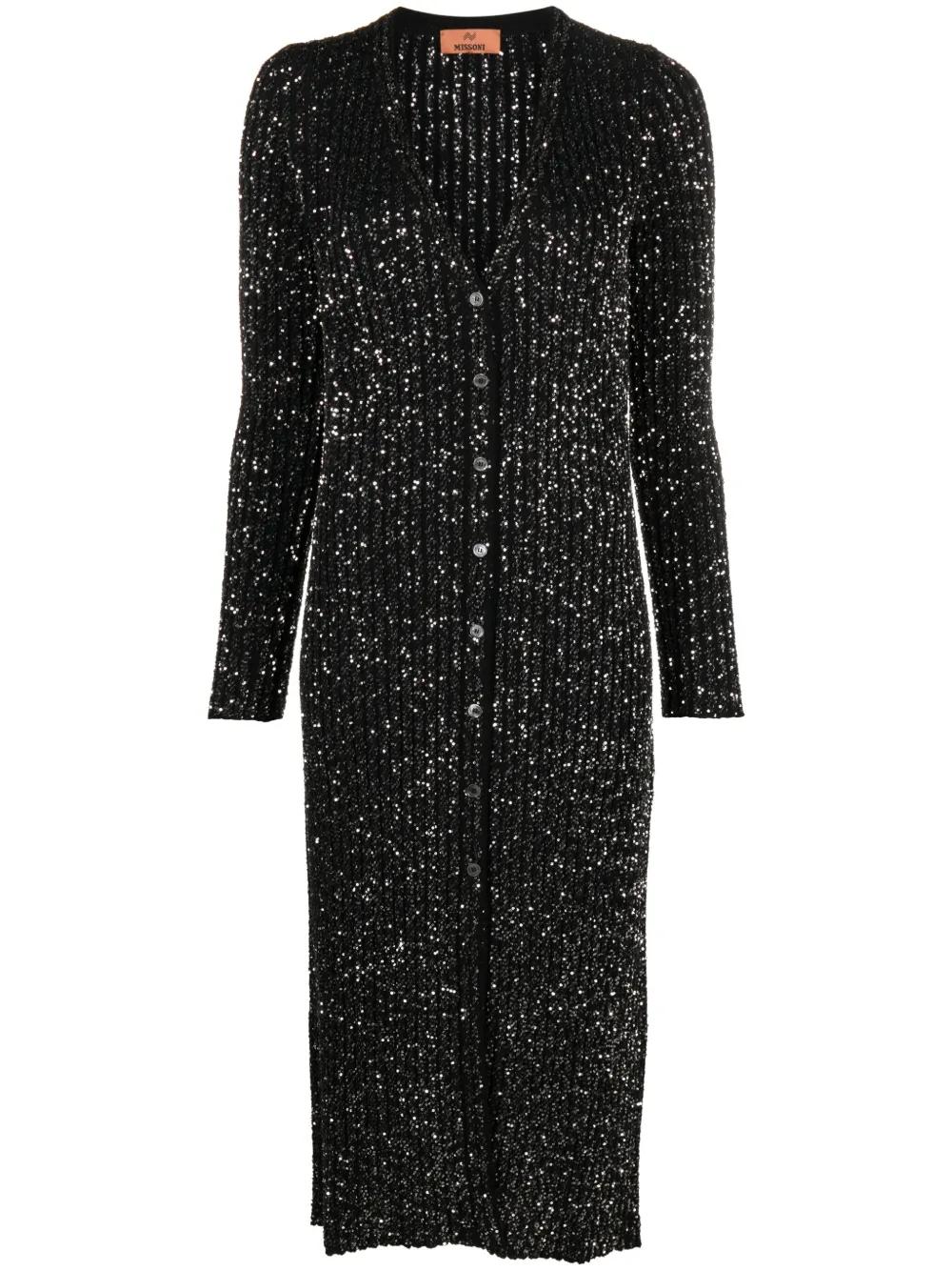 black silver-tone metallic threading ribbed V-neck front button fastening long sleeves below-knee length straight hem The item you receive may differ slightly from the item photographed. This is due to the artisanal nature with which all Missoni products are constructed.