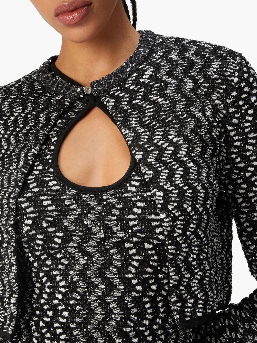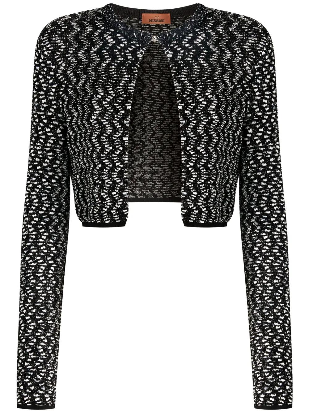 black/multicolor sequin embellishment round split neck button fastening cropped long sleeves The item you receive may differ slightly from the item photographed. This is due to the artisanal nature with which all Missoni products are constructed.