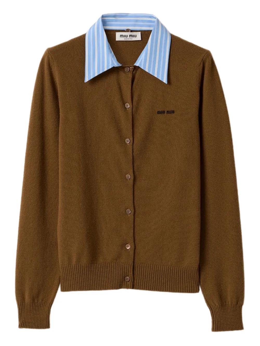 Miu Miu shirt-collar cashmere cardigan - Brown