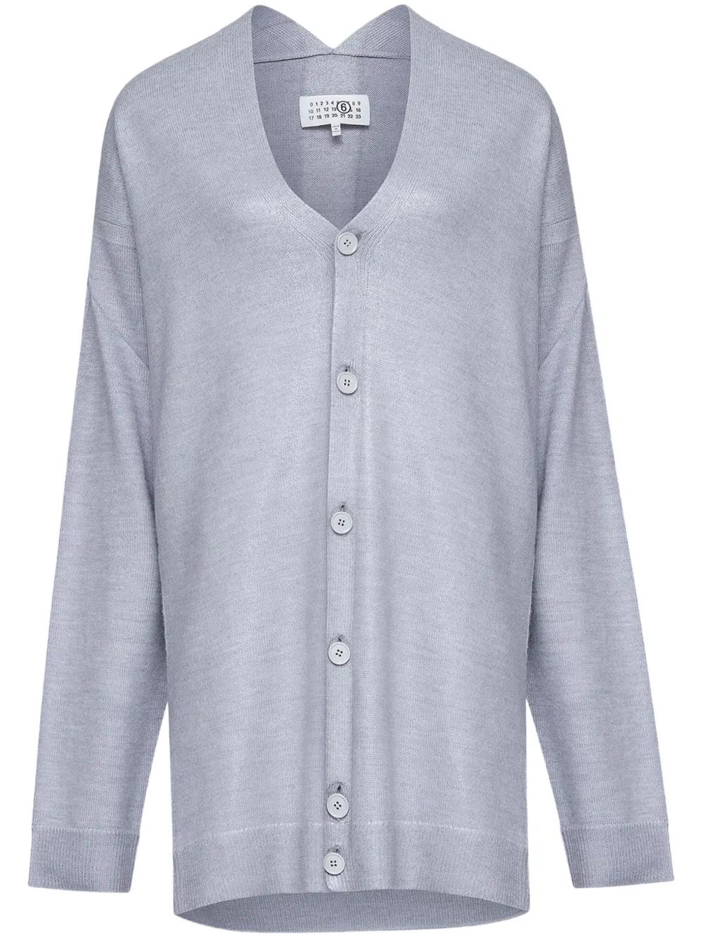light grey front button fastening drop shoulder long sleeves ribbed trim