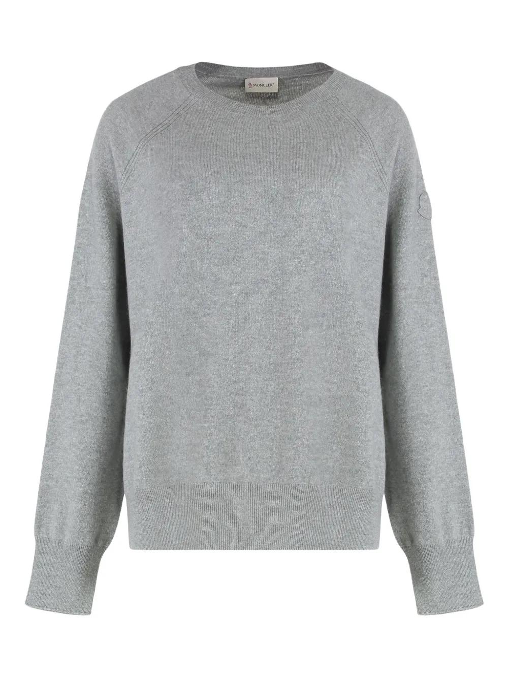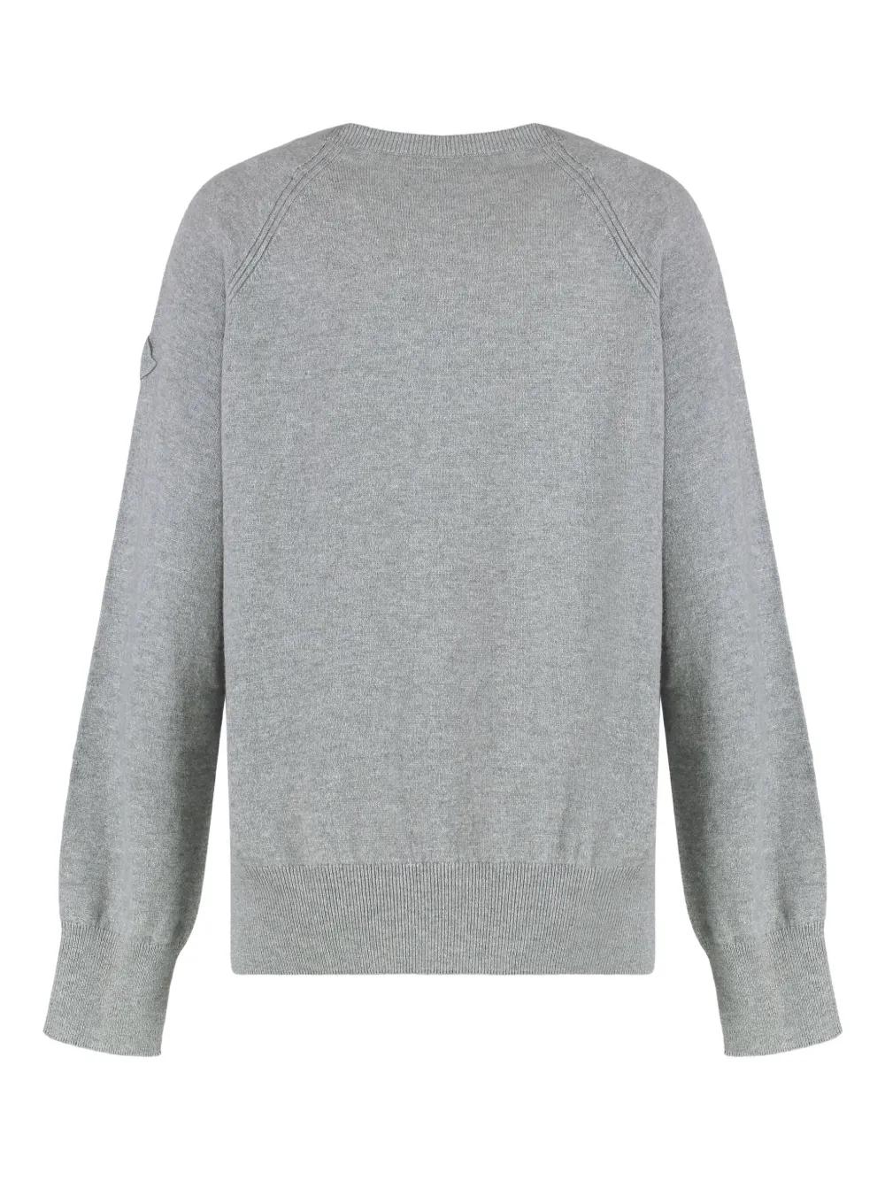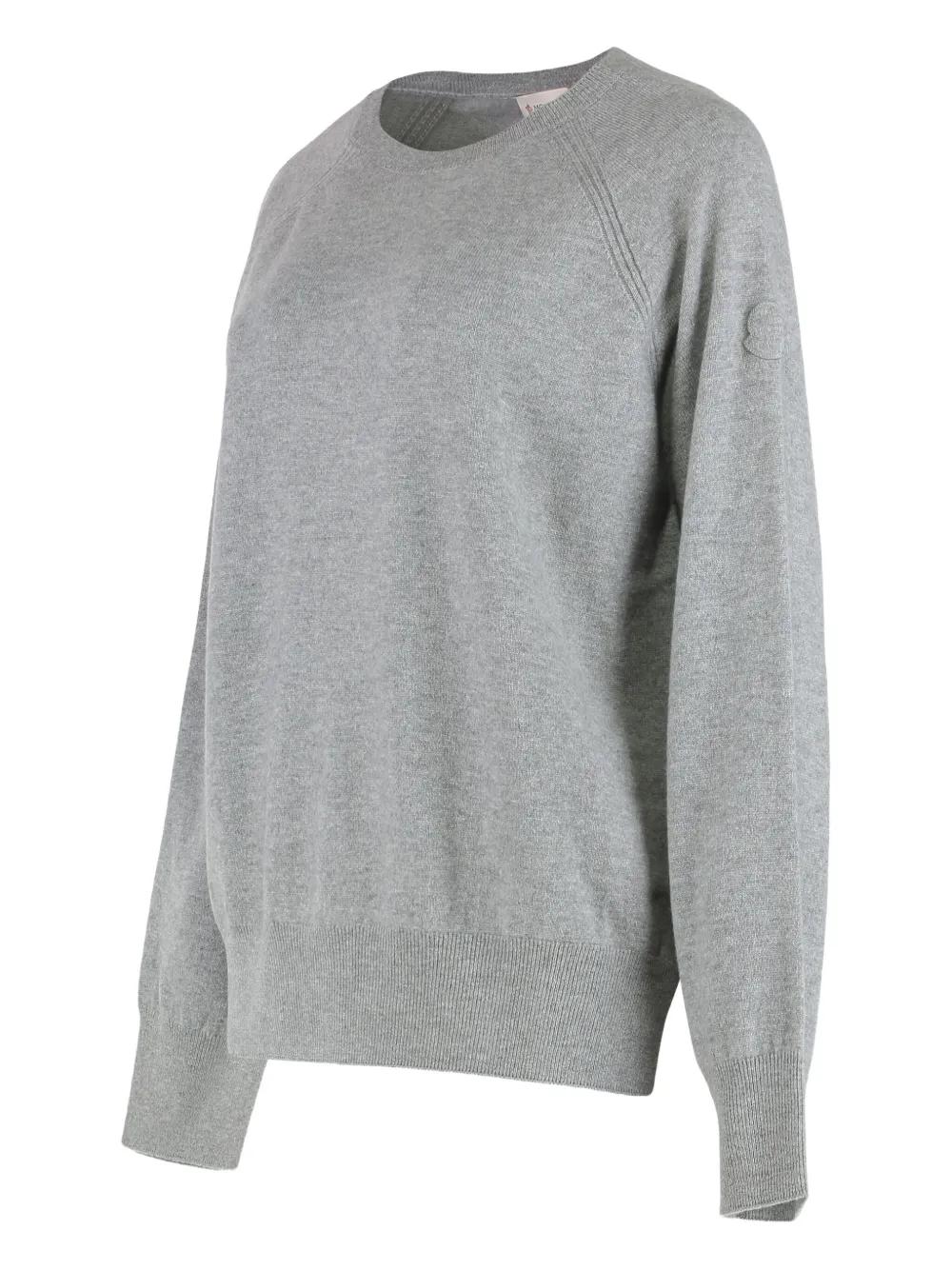 grey crew neck logo patch long sleeves ribbed hem ribbed cuffs