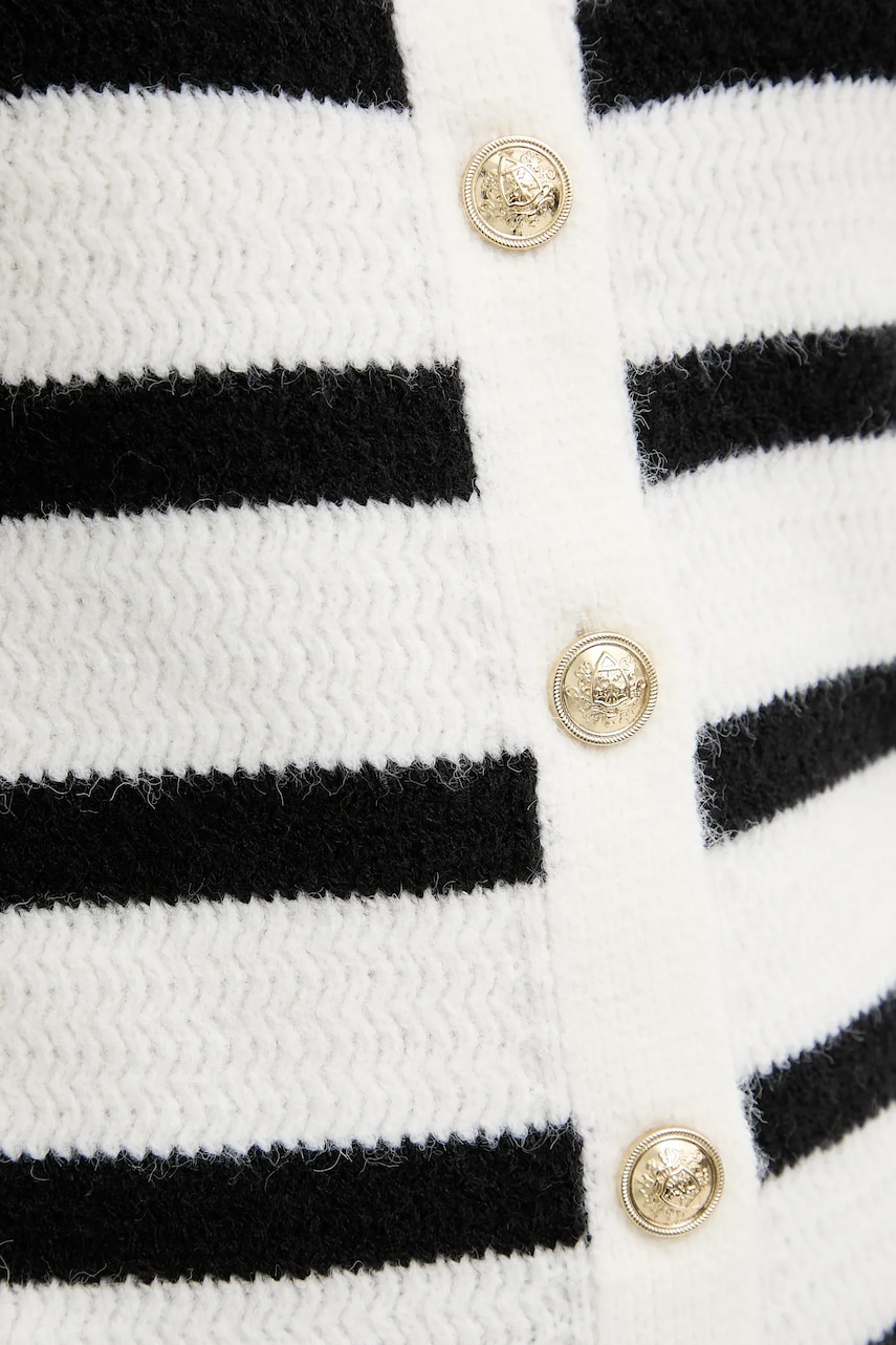- Ten produkt został częściowo uszyty z poliestru pochodzącego z recyklingu. - Prosty, nie blokujący ruchów fason. - Wygodne zapięcie na guziki ułatwia zakładanie i zdejmowanie. - Imitacja kieszeni z przodu. - Rękawy i dolna krawędź zakończona ściągaczami chroniącymi przed niekorzystnymi warunkami atmosferycznymi. - Dzianina średniej grubości. - Długość rękawa: 66 cm. - Długość: 57,5 cm. - Szerokość pod pachami: 48 cm. - Wymiary podane dla rozmiaru: S.