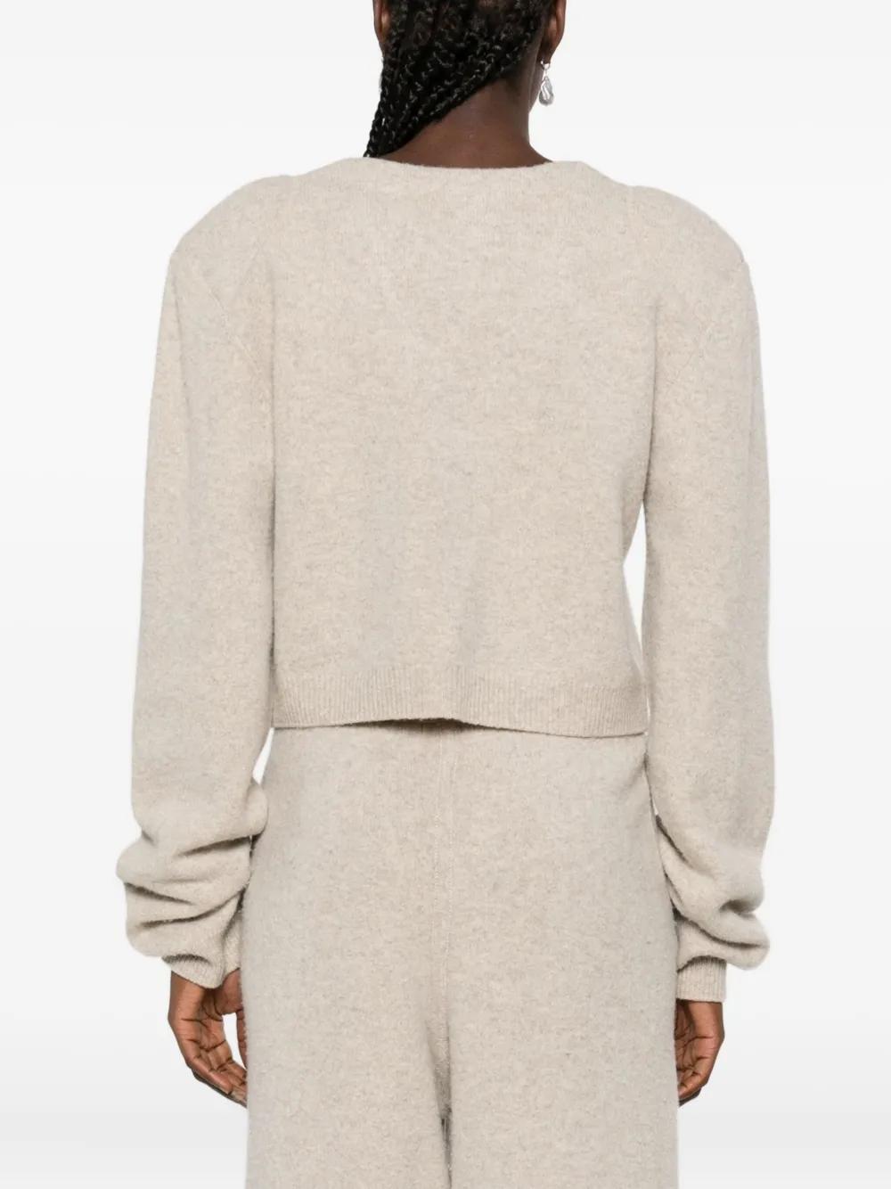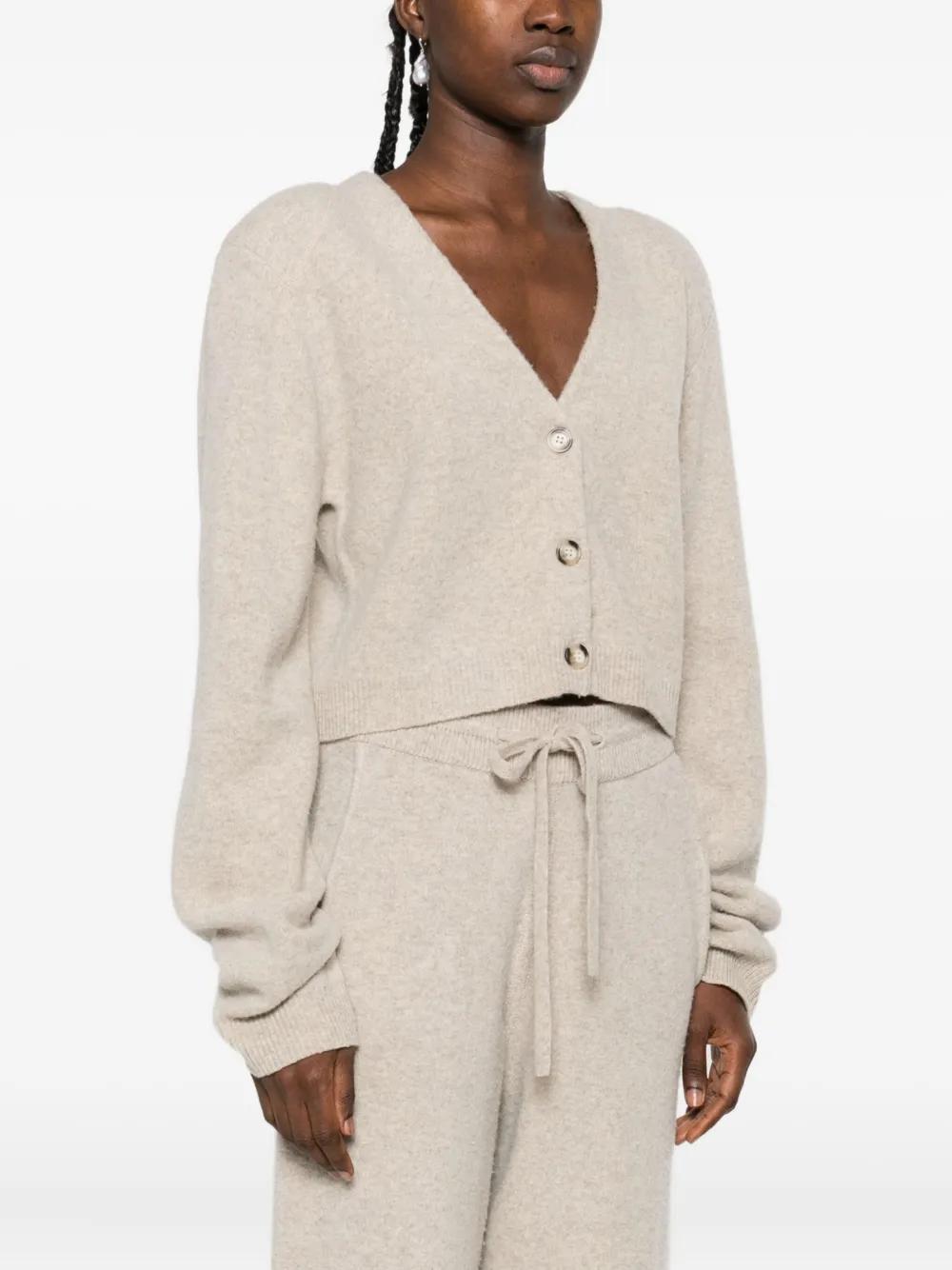oatmeal V-neck cropped length long sleeves button fastening merino wool