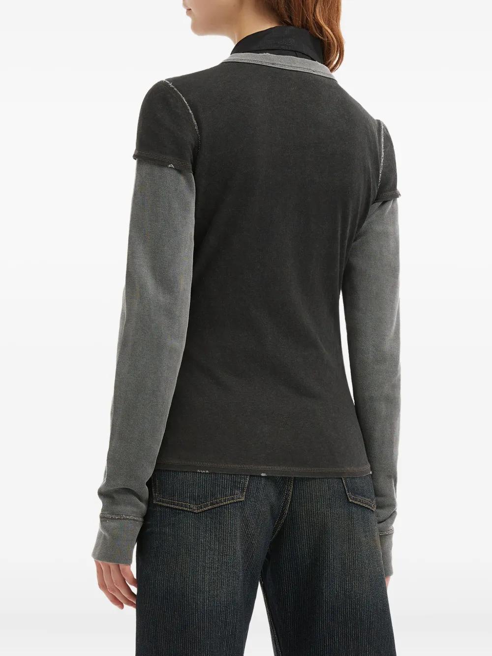 black layered sleeves button fastening round neck
