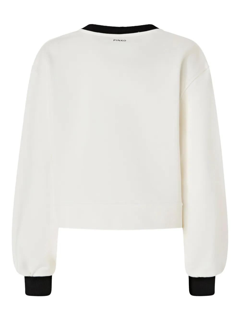 white embroidered appliqué round neck long sleeves ribbed cuffs