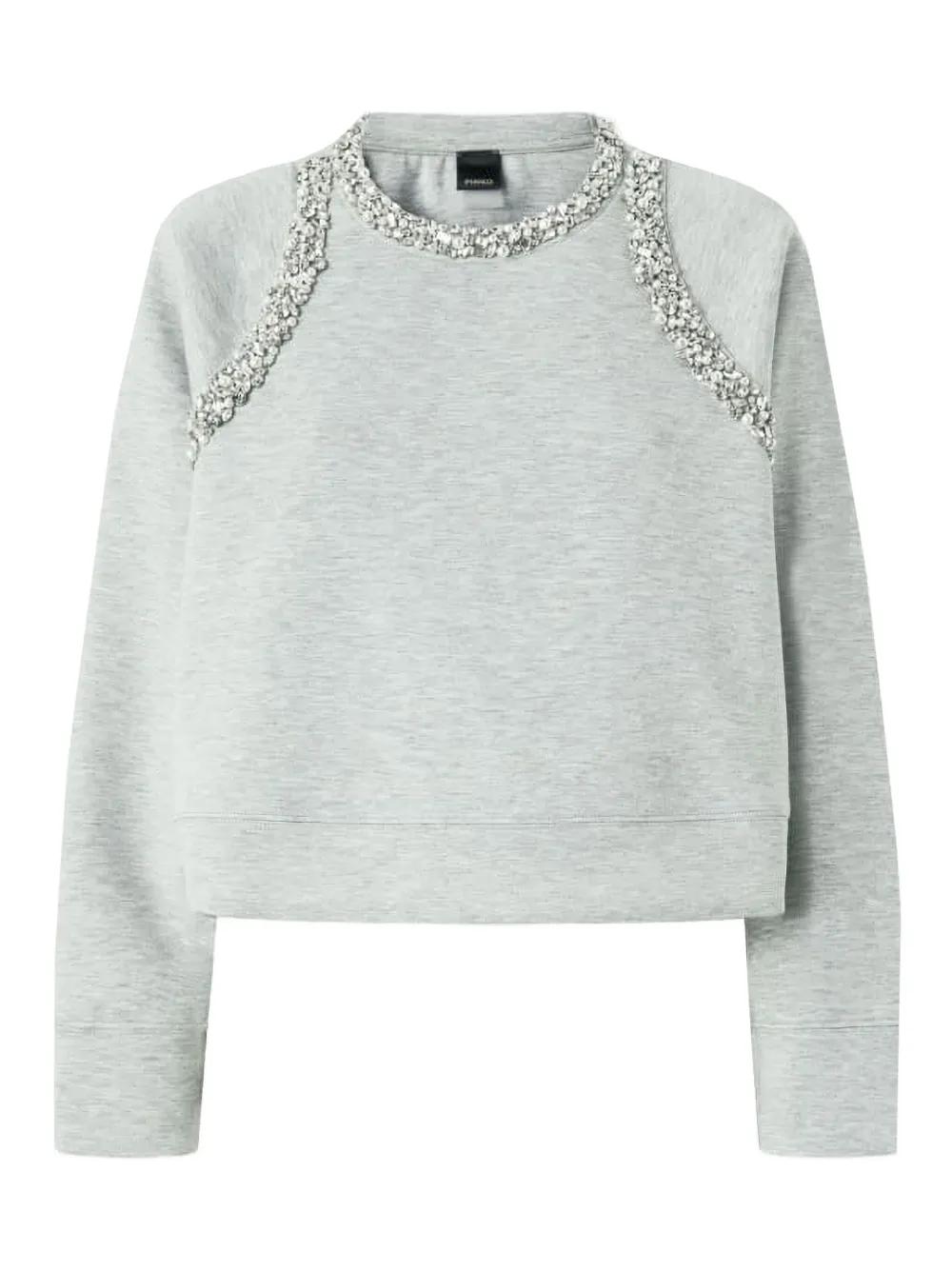 grey embellished neckline long sleeves ribbed cuffs crew neck