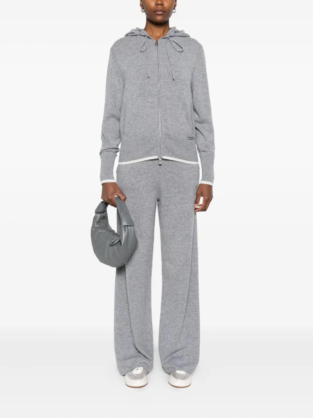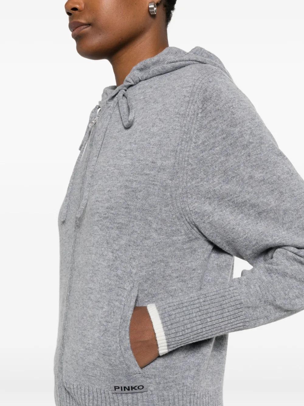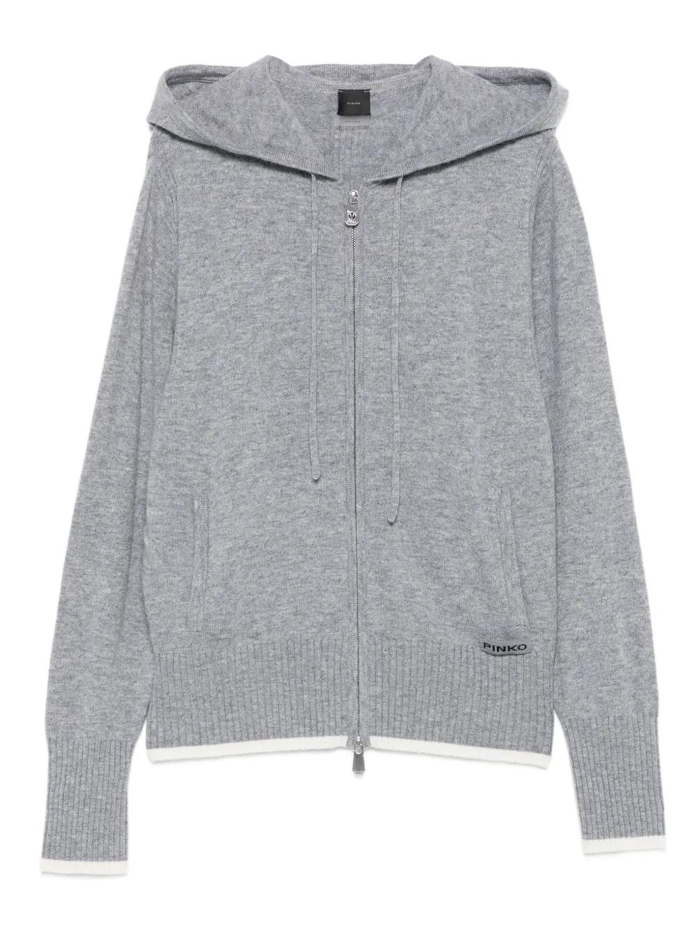grey hooded neckline front zip fastening ribbed hem and cuffs logo detail