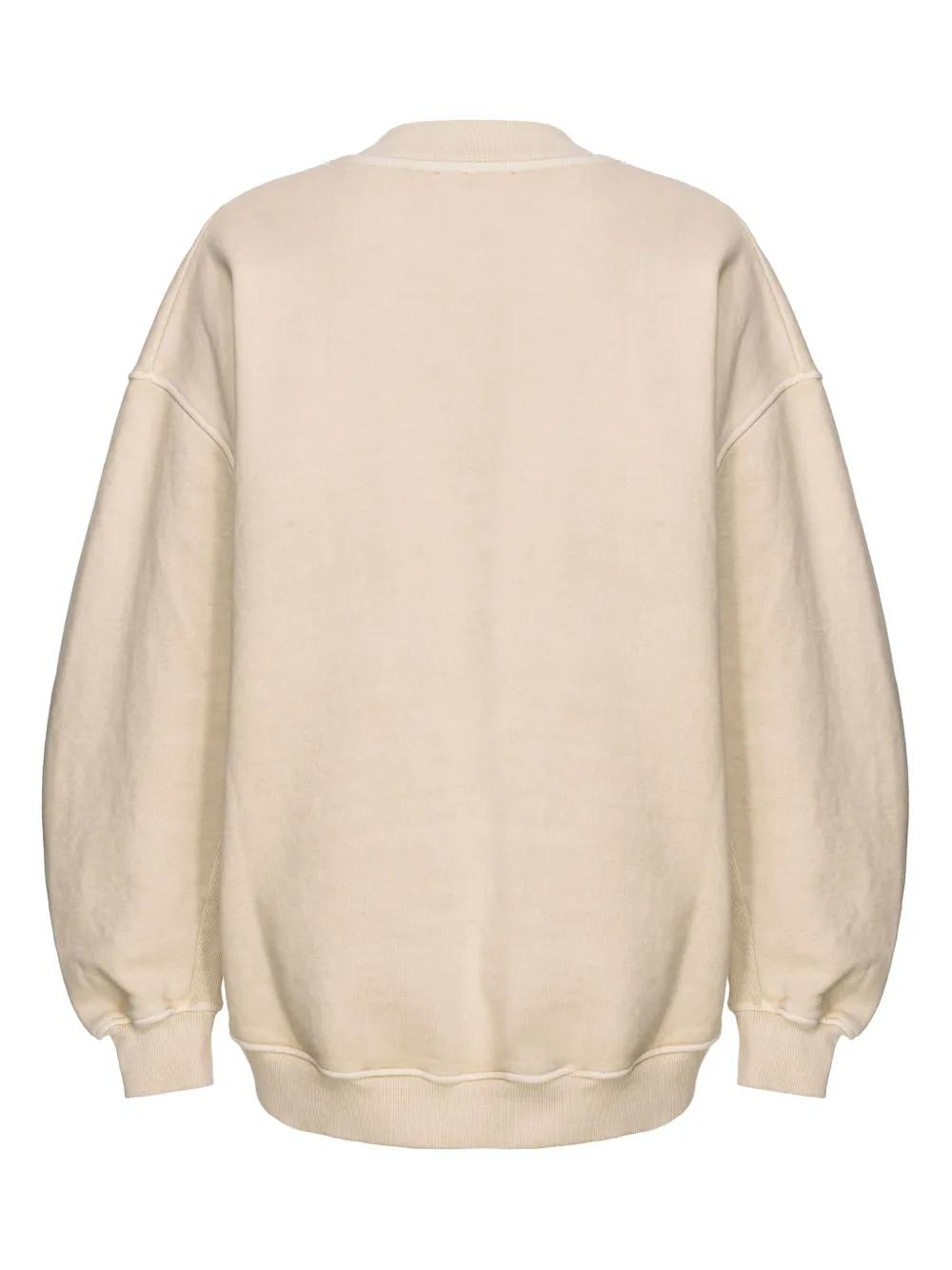 beige cotton blend V-neck stud detailing long sleeves ribbed cuffs and hem high-low hem