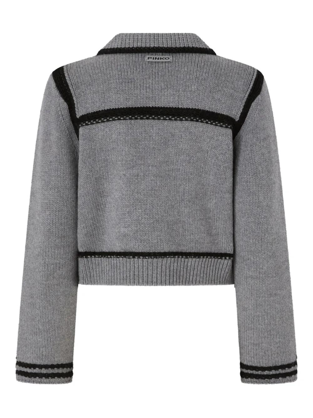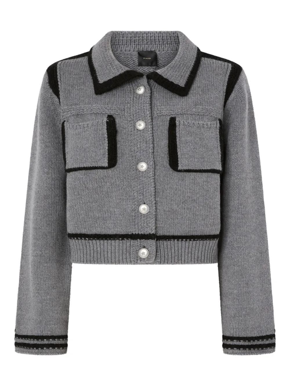 grey black trim button fastening patch pockets ribbed hem long sleeves