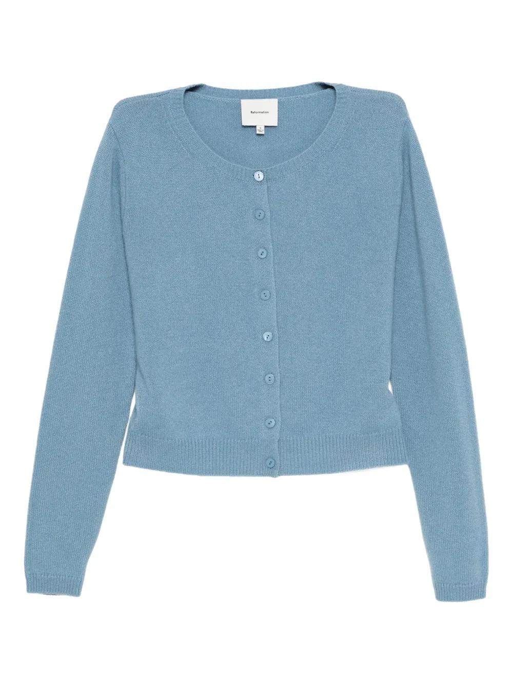 cornflower blue front button fastening long sleeves ribbed cuffs and hem