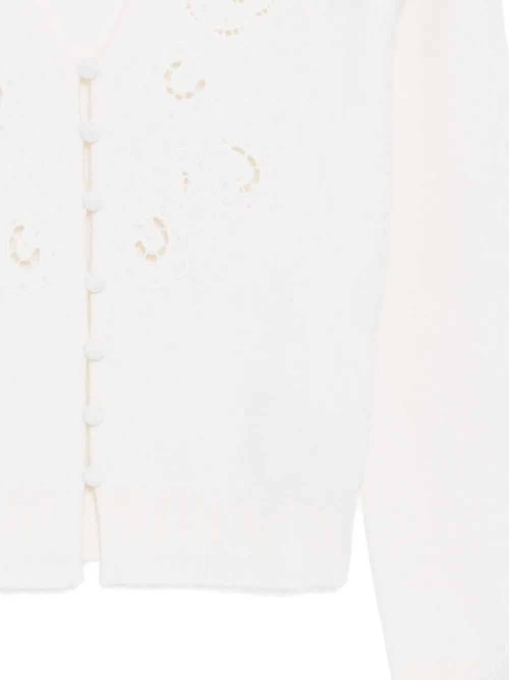 ivory white front button fastening embroidered design ribbed cuffs and hem